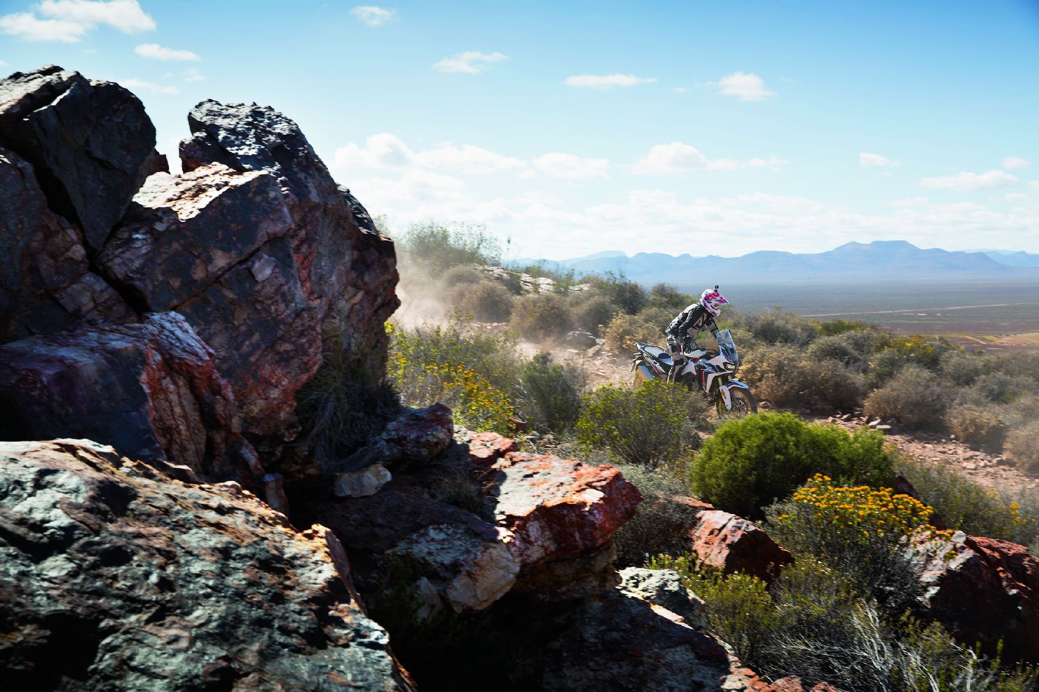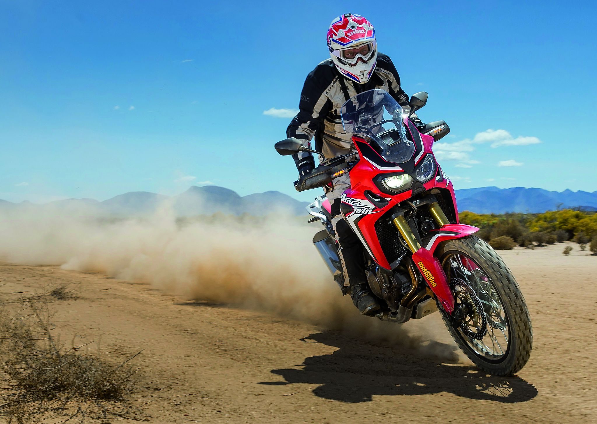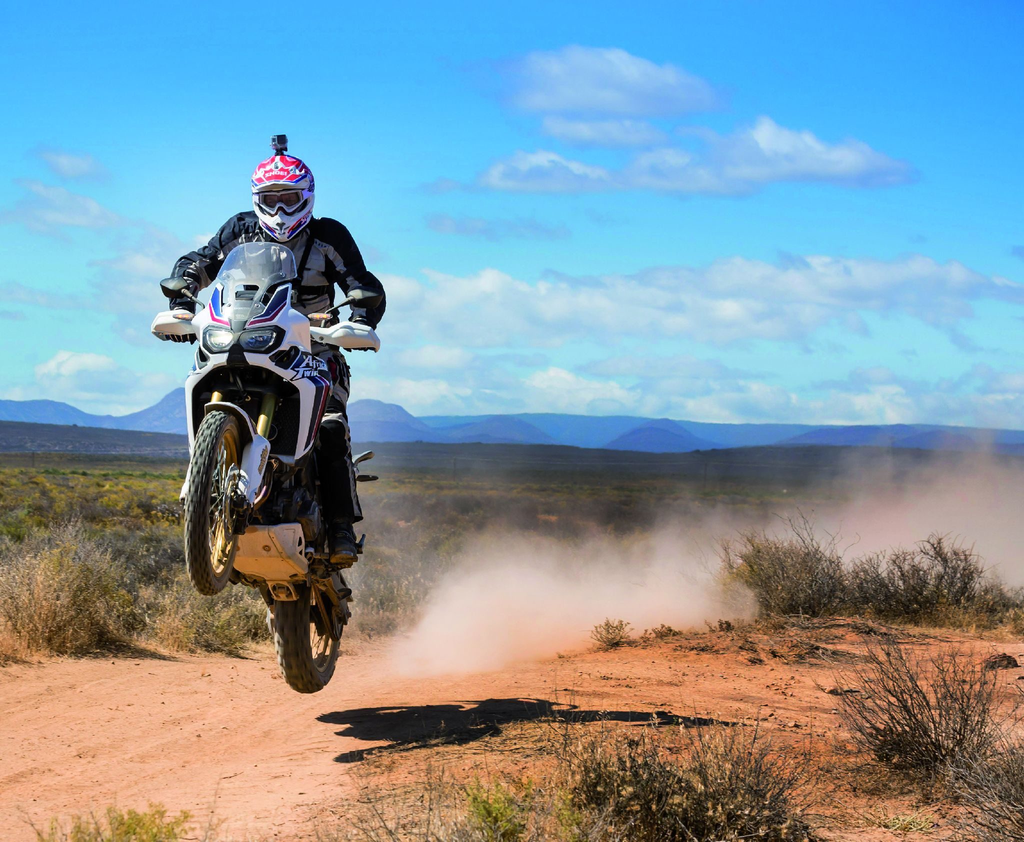 jak Africa Twin? Podczas dwóch dni przemierzyliśmy na motocyklach ponad 500 kilometrów. Może to niewiele, ale gdy uświadomimy sobie, że duża część została pokonana poza asfaltem, to czujemy się z tym nieco lepiej. Autostrady, wąskie, nierówne i kręte drogi pozwoliły sprawdzić nową Hondę na asfalcie, lecz prawdziwy potencjał pokazała na piaszczystych, szutrowych i kamienistych, pustynnych ścieżkach.