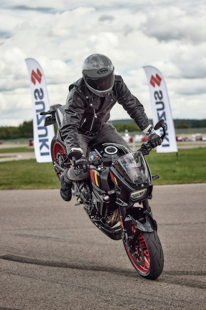 Sprawdziłem też jak działa sprzęgło antyhoppingowe, które w teorii nie pozwala na zablokowanie tylnego koła przy zbyt szybkiej redukcji. System działa, ale nie jest to komponent o charakterystyce stricte sportowej. Żeby wejść w zakręt z płynnym uślizgiem, musiałem posiłkować się sprzęgłem. Zapewne jest to wiedza bezużyteczna, ale z przyjemnością się nią z wami dzielę. Gdyby Suzuki zrobiło w tym i innych modelach ABS sportowy (z możliwością zablokowania tylnego koła) sądzę, że motocykl stałby się popularnym wyborem do sportowej jazdy po małych torach.