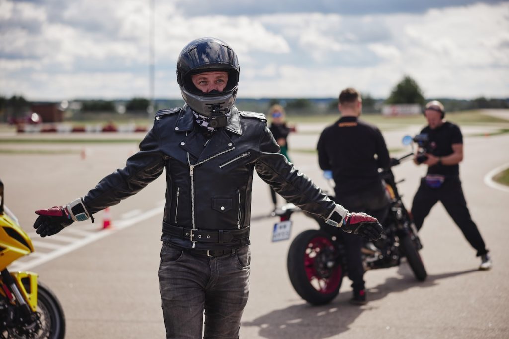 Dlatego na potrzeby tego testu sięgnąłem po radykalne rozwiązanie. Ramoneska! Wraz z Piotrkiem Baryłą zachwycaliśmy się nią w sklepie RRmoto i uznaliśmy, że w naszym postrzeganiu jest to jeden z niewielu ciekawych ciuchów motocyklowych. Barry nie wierzył, że to zrobię, ale wraz z innymi redaktorami uznaliśmy, że po prostu nie da się źle wyglądać w ramonesce.