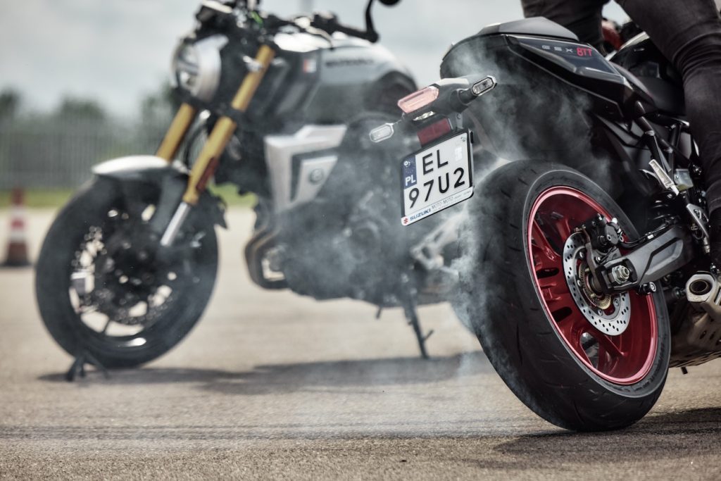 Nie wiem, czy to zamierzone działanie, ale zarówno CF Moto, jak i Zontes pomimo niespecjalnie wysokich osiągów, są bardzo agresywne przy początkowym otwarciu przepustnicy. Po kilku przejazdach na tylnym kole udało mi się sprawić, że układ ABS zwariował i się wyłączył. Sprawdziłem więc precyzję układu hamulcowego, jeżdżąc na przednim kole i ten test Suzuki znowu zdało celująco.
