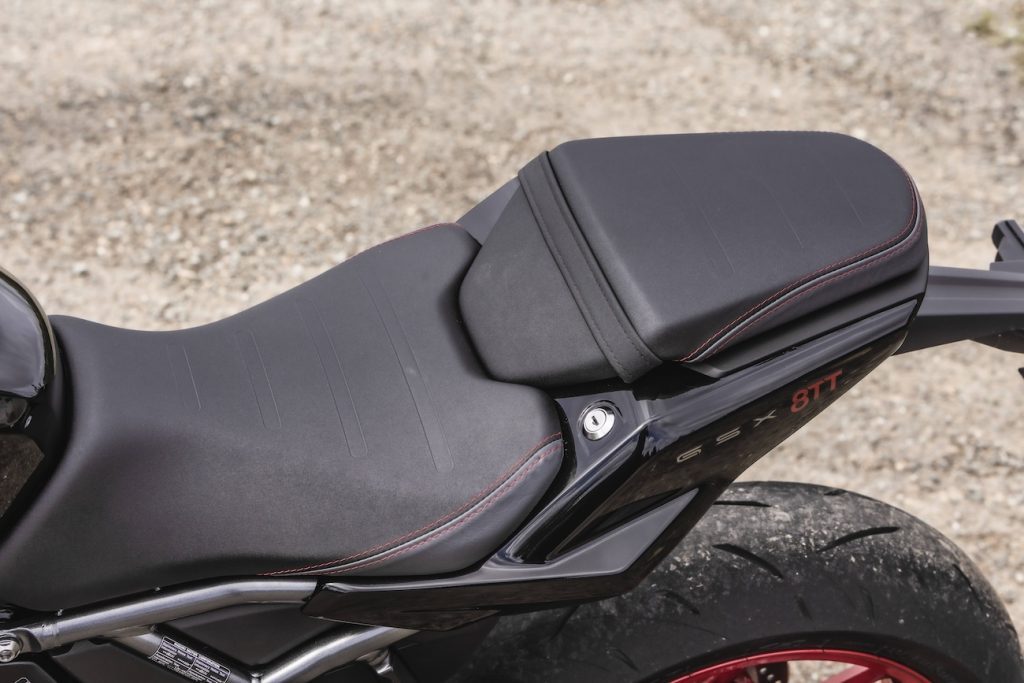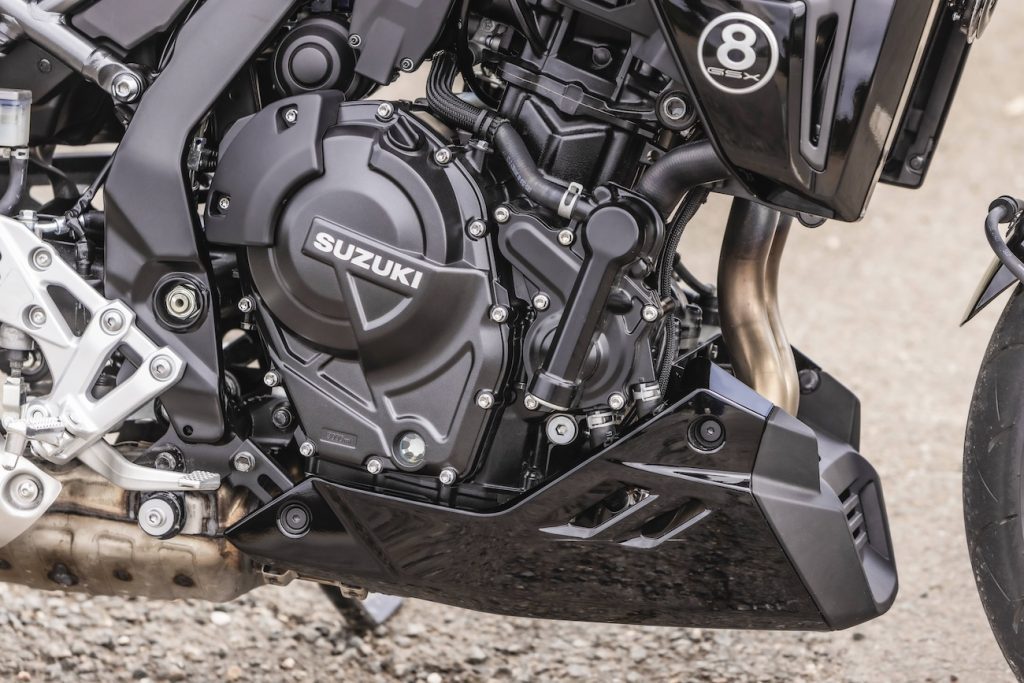 To samo dotyczy GSX-8TT. Nie sposób na nim wyglądać nieatrakcyjnie i nie ma siły, żeby komuś nie przypasował. Stalowa rama, dwucylindrowy silnik z dwoma wałkami wyrównoważającymi, zawieszenie upside down i radialnie montowane zaciski hamulcowe. Do tego wyświetlacz TFT z prostym układem, nieskomplikowanym menu i pełen pakiet elektroniki w postaci kontroli trakcji, ABS i zmiennych trybów jazdy.