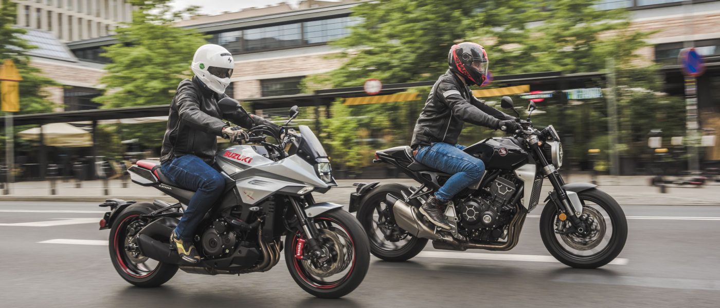 Wyczerpując słowo „klasyka” do końca, muszę zwrócić uwagę na to, że te motocykle bazują na klasycznych konstrukcjach. Nie da się inaczej określić japońskiego, czterocylindrowego, rzędowego silnika. Osiągi są bardzo zbliżone, a moce skrojone na miarę maszyn bez owiewek. Zaufajcie mi, że 145 KM w Hondzie i 150 KM w Suzuki to wystarczające wartości do przewietrzenia głowy. Moment obrotowy