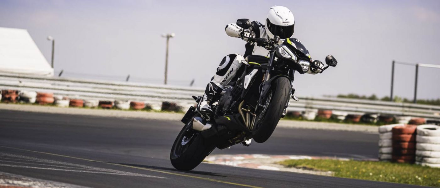 Popisy i sztuczki na Triumphie jak zwykle przychodzą łatwo. Nie bez powodu Street Triple w ostatnich latach jest motocyklem najchętniej wybieranym przez stunterów. Każdy kto ogarnia jazdę na tylnym kole wskoczy na Streeta i ogarnie go w chwilę. Dzięki quickshifterowi wbijanie kolejnych biegów i napędzanie się jest zabawą dla niegrzecznych dzieci. Stoppie, czyli jazda na przednim kole to sztuczka już o wiele trudniejsza, jednocześnie Triumph to jeden z najlepszych motocykli do takich zabaw. Co ciekawe pozwala na to ABS w trybie Track. Możemy wtedy blokować tylne koło, więc system nie głupieje, gdy tył odrywa się od ziemi. Trzeba jednak być czujnym, gdyż zdarzyło się, że system zareagował jak już postawiłem motocykl na przednim kole i opuścił tył za mnie. W ten sposób skończył się nasz czas na torze, ale to dobrze, bo na Triumphie zacząłem się czuć aż zbyt pewny siebie.