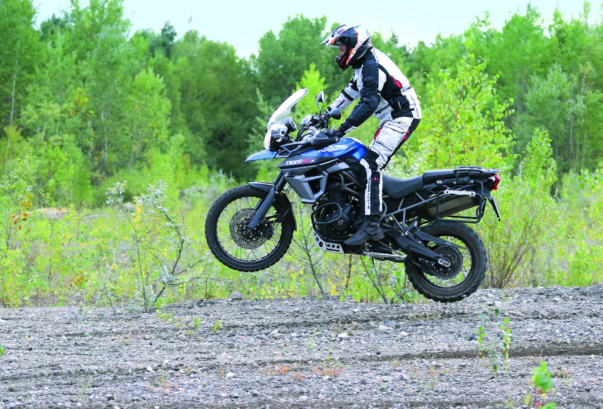 Również charakter silnika sprawia, że w wolnych sekcjach Triumph będzie trudniejszy do opanowania niż BMW. Pracując na obrotach bliskich jałowym, łatwo zadusić jednostkę. Jedynym sposobem, żeby tego uniknąć, jest stała praca sprzęgłem, co po dłuższym czasie powoduje ból palców. Jedyną receptą pozostaje więc włączenie trybu „pełen atak!”. Musimy się przebić przez przeszkody, wyjechać na otwartą przestrzeń i zaciąć gaz w pozycji otwartej. BMW będzie mogło jedynie wykrzyczeć: „mein Gott!!!”. Tiger wchodzi wtedy w tryb bestii i rwie do przodu, rozrzucając dookoła kamienie. Jego elektronika pozwala na więcej niż ta w BMW. Kontrola trakcji ingeruje odrobinę później i jeśli precyzyjnie operujemy gazem, możemy iść w lekkim, kontrolowanym poślizgu przy włączonym systemie. Komputer Triumpha w trybie off-road wyłącza ABS w tylnym kole, dzięki czemu XCX daje o wiele więcej frajdy.