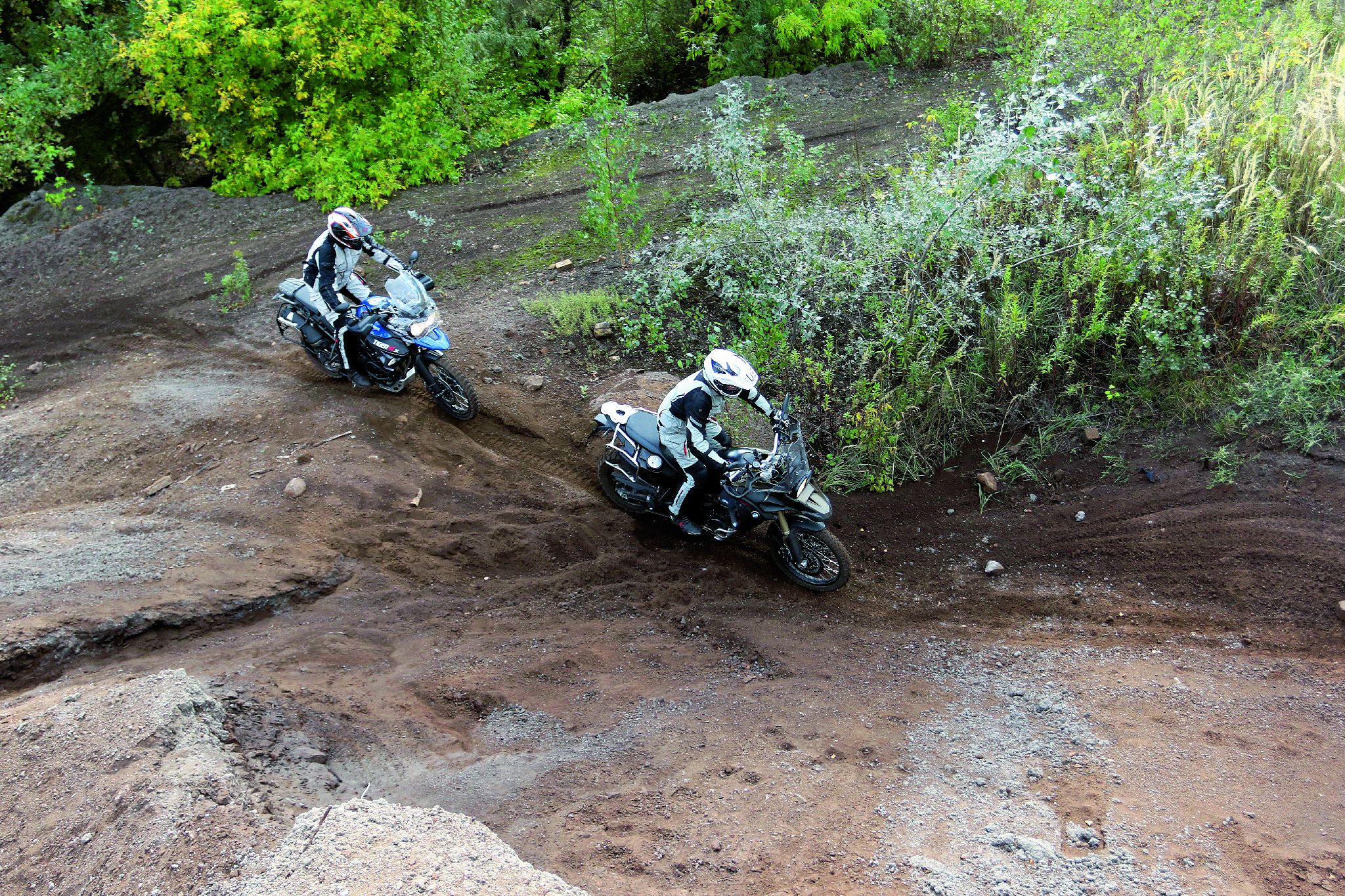Dzień z BMW F 800GS Adventure i Triumphem Tigerem 800XCX pokazał nam, jak różne mogą być teoretycznie podobne maszyny. BMW jest tropicielem, który rozsądnie wytyczy szlak i nieprędko, aczkolwiek skutecznie, dotrze do celu. Triumph to typowa szarża. Przebija się przez dziury, krzaki i wzniesienia, a dźwięk z tłumika brzmi trochę jak Mel Gibson w filmie Braveheart: „FREEEEDOOOOMMMM!!!!”. Problem polega na tym, że z rozpędu może wbić się w niezłe bagno. Skończy się na tym, że właściciel BMW będzie już dawno pił piwo przy ognisku, a gość od Triumpha będzie nie wiadomo gdzie, bawiąc się przy tym wyśmienicie.