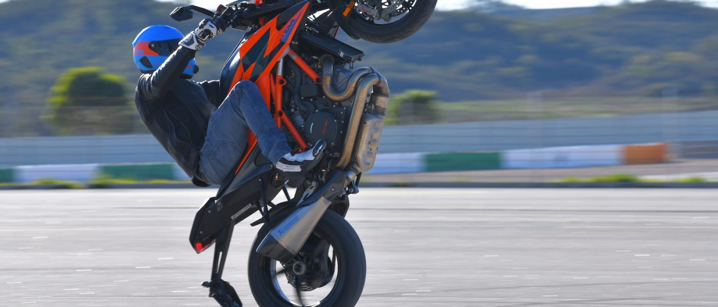Po powrocie znalazłem duży pusty parking i postanowiłem sprawdzić jak KTM sprawdza się przy czynieniu „sztuczek precyzyjnych”. Bestia ponownie mnie zaskoczyła, bo wolna jazda na tylnym kole nie była trudna. Silnik nie szarpie, więc jedyne co musiałem robić to kontrolować sytuację tylnym hamulcem. Stoppie, czyli jazda na przednim kole też wychodzi o wiele lepiej i łatwiej niż na poprzedniku. Po tym wszystkim naszły mnie następujące przemyślenia. Kiedyś już jeździłem na motocyklach o charakterze podobnym do Bestii. Były to sportowe sprzęty klasy 1000 ccm z lat 2000–2010. Dzikie, szybkie, zdolne do jazdy po torze, ale wciąż nadające się do codziennego użytku. Dzisiaj nie mamy już wielu sportowych „litrów”. Wyparły je maszyny wyścigowe z homologacjami drogowymi (patrz BMW S 1000 RR, Ducati Panigale, Honda Fireblade). Miejsce „sportów” na drogach mają szansę zająć takie sprzęty jak KTM Super Duke R czyli hypernakedy.