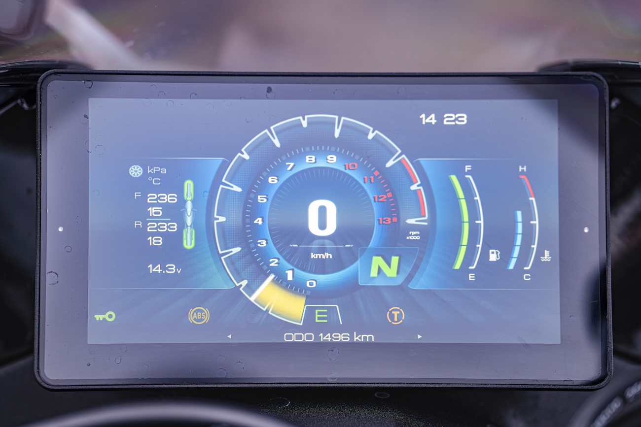 Jeśli coś można Zontesowi wypomnieć, to niedopracowaną kalibrację elektroniki i quickshifter, który działa z wyraźnym opóźnieniem. Przypomina raczej wczesne wersje systemu, który mamy obecnie w standardzie w japońskich i europejskich motocyklach. W praktyce oznacza to dość agresywną charakterystykę wtrysku paliwa, do której trzeba się przyzwyczaić. Układ ABS działa wręcz nadgorliwie – przy bardzo silnym hamowaniu na torze klamka robiła się twarda, a system wyraźnie ingerował.