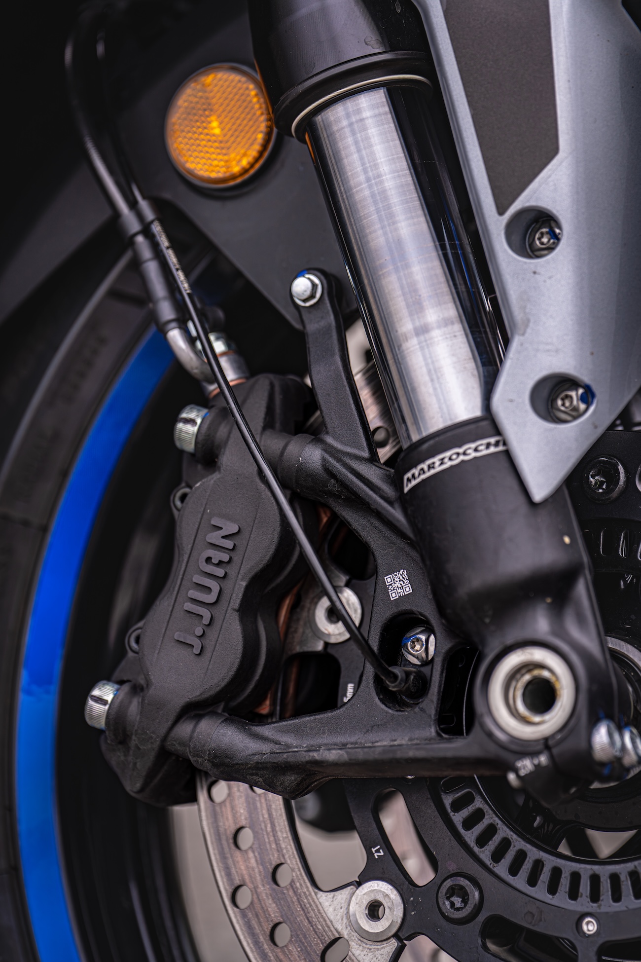 Na ulicy ten problem jest mniej zauważalny, ale trzeba mieć na uwadze, że ABS potrafi być zbyt ofensywny. Fakt, że przepustnica jest sterowana linką sprawił, że kontrola trakcji obniża moment obrotowy poprzez kontrolę zapłonu, przez co moment obrotowy nie jest regulowany płynnie. W praktyce na torze, przy silnych wyjściach, gdy opona wchodziła w uślizg, czuć było agresywne odcinanie, przez co motocykl szarpał. Ponownie – na ulicy nie jest to problemem, a na torze po prostu wyłączyliśmy kontrolę trakcji i ABS. Musimy wspomnieć o hamulcach, które są mocne, ale pompa daje słabą modulację. Gdybyśmy budowali taki motocykl na tor, z pewnością wymienilibyśmy przednią pompę.