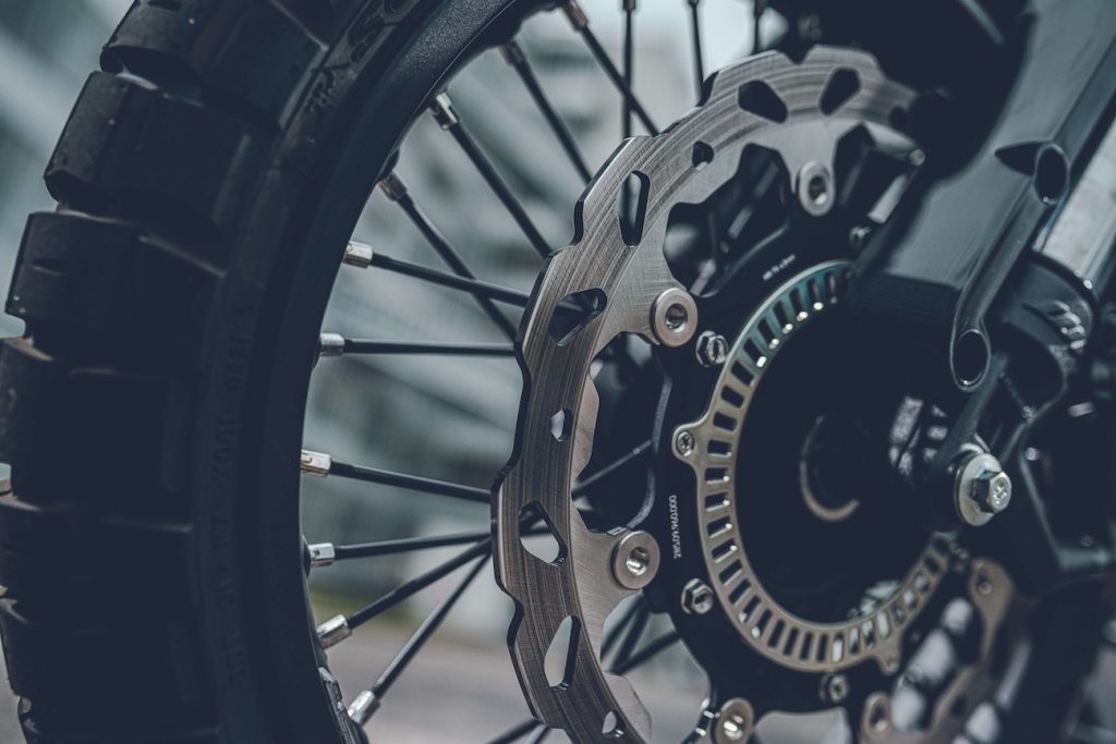 Rama pomocnicza jest odlewana z aluminium i ma zintegrowane wloty powietrza pod siedzeniem. Nie ma plastikowych osłon ani dodatkowych wsporników, a jednoczęściowa konstrukcja zmniejsza złożoność i masę. Co ciekawe, Airbox znajduje się całkowicie wewnątrz ramy pomocniczej. Charakterystyczny odlewany grawitacyjnie wahacz, z otwartą kratą jest wykonany z lekkich stopów i został specjalnie zaprojektowany pod kątem sztywności i stabilności, oferując jednocześnie ciekawe właściwości elastyczne. Mnie osobiście „Husqvarnowski” design wahacza się nie podoba, aczkolwiek chyba nie najgorzej komponuje się z ogólnym industrialnym charakterem tego motocykla.