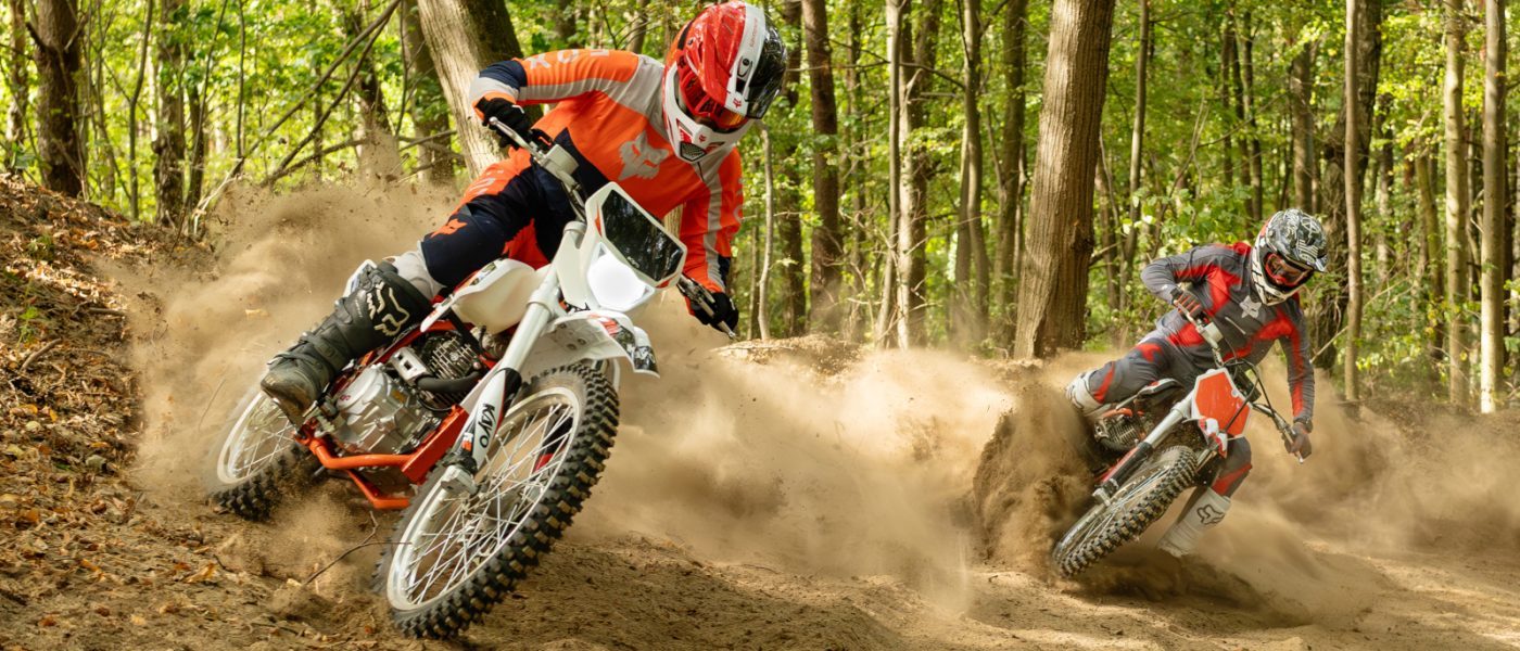 Imponująca zwinność maszyny i przyzwoita moc pozwalają na świetną zabawę w stylu Carsona Browna (jeżeli go jeszcze nie znacie, to obowiązkowo polecam sprawdzić jegomościa) bardziej doświadczonym zawodnikom, którzy będą mogli próbować jazdy na zaciętym gazie, ale w razie potrzeby nawet przy szybszej jeździe będą też w stanie podnieść przednie koło w powietrze, kiedy trzeba będzie je przerzucić nad głębokimi dziurami czy większymi korzeniami. Z kolei mniej zaprawieni w boju nie powinni narzekać na niedobór mocy, która zdecydowanie ułatwi podbijanie bardziej stromych podjazdów i trudniejszych terenów. Zawieszenie spisuje się zdecydowanie lepiej niż w przypadku podstawowego modelu K2, ale pod względem możliwości ustawienia sporo odstaje od bardziej rozwiniętego T4. Pozwala więc na dużo przyjemniejszą i sporo szybszą jazdę po nierównym terenie. Hamowałbym jednak zbyt ambitne motocrossowe aspiracje, bo mogą one zostać szybko ostudzone po mocniejszym dobiciu przy lądowaniu dużego skoku.