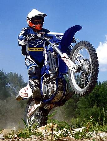 Yamaha YZ 450F została zbudowana z myślą o dominacji na torach motocrossowych. Jest maszyną przede wszystkim do walki, dlatego zrezygnowano ze wszystkich zbędnych elementów. Pełna Sparta. Z kolei WR 450F ma o wiele bardziej uniwersalny charakter – w końcu to enduro i w dodatku hard, czyli motocykl wszędobylski z wyczynowymi aspiracjami. Można go zarejestrować i równie dobrze zapuszczać się w miejską dżunglę. W opcji jest dostępny „kit homologacyjny”, m.in. kierunkowskazy, lusterka oraz prędkościomierz. Obecny w WR-ce od tego roku elektryczny rozrusznik umożliwia bezstresową eksploatację. Z kolei odpał nowego YZ przypomina rozruch dwusuwu. Po prostu „kop & go”. Żadnego ustawiania sprężania czy aerobiku na kopniaku. Automatyczny dekomprestaor załatwia sprawę. Na kierownicy umieszczono dźwignię ciepłego ssania pomocną przy uruchamianiu motocykla po upadku. A o ten nietrudno, bo…