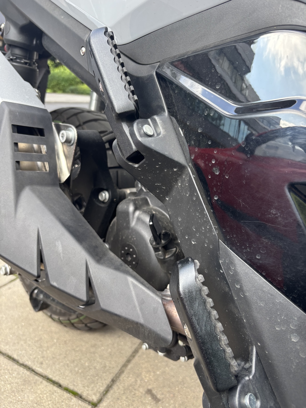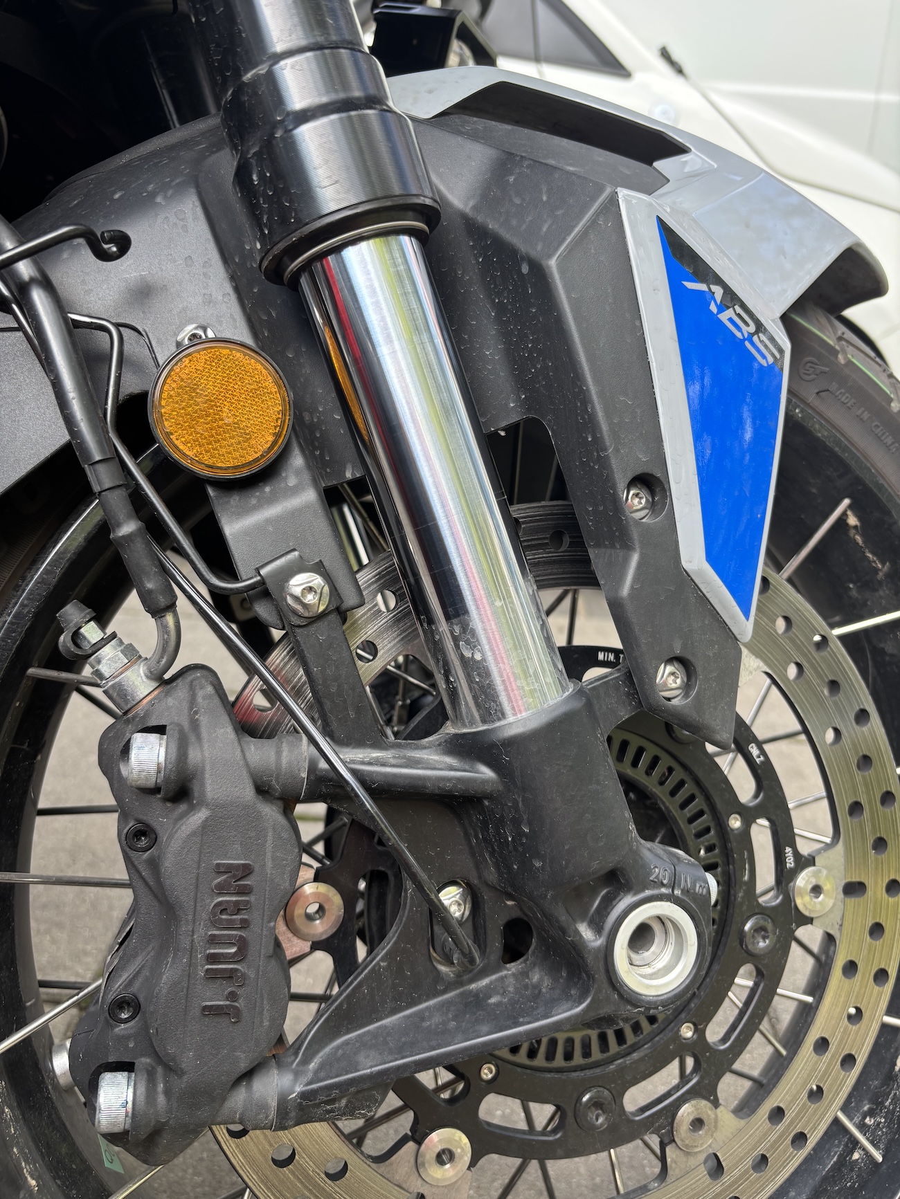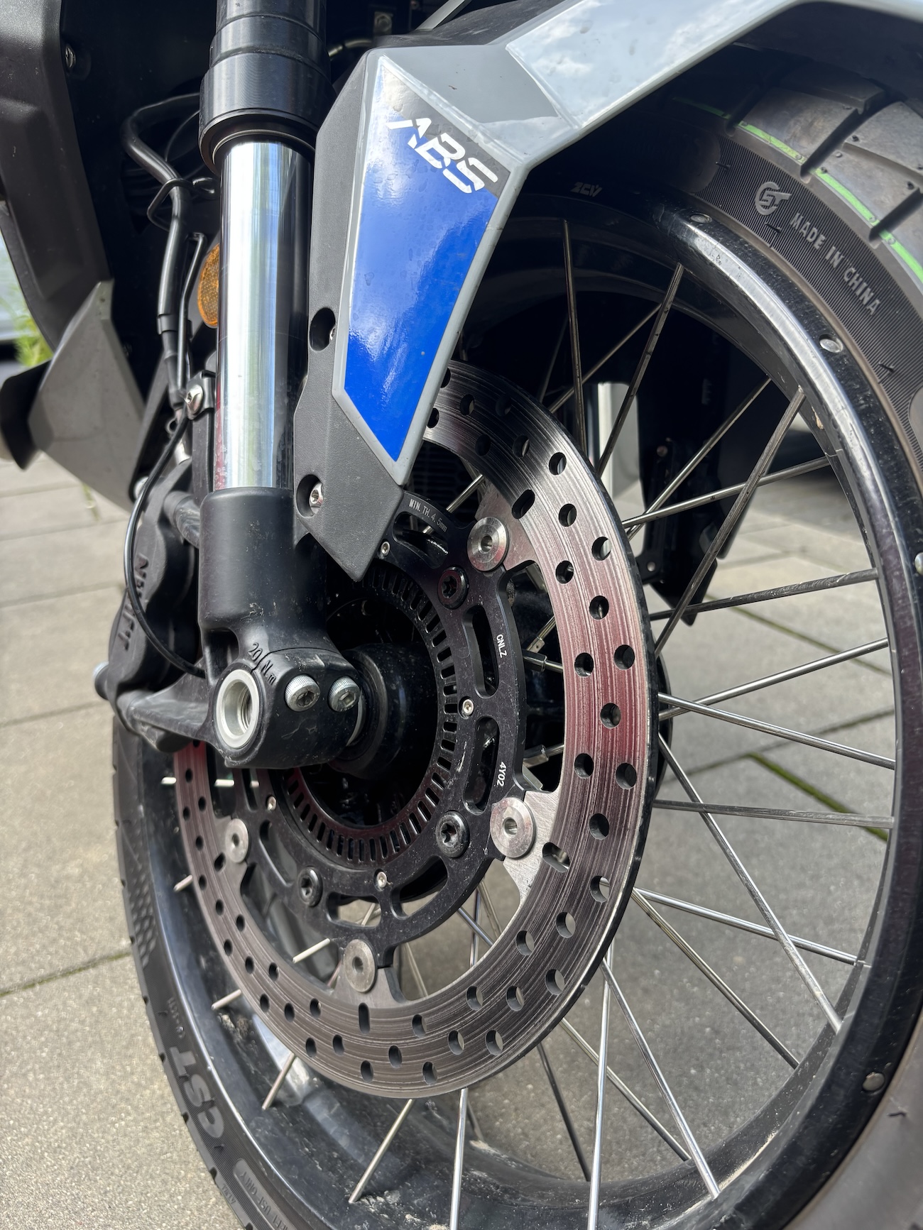 Prowadzenie można określić jako pewne i komfortowe. Układ jezdny dobrze wybiera nierówności, zawieszenie jest zaskakująco skuteczne, a duże koła pomagają utrzymać stabilność przy wyższych prędkościach. Nawet przy 120-130 km/h Zontes zachowuje się dojrzale. Nie traci precyzji prowadzenia, nie myszkuje, nie męczy kierowcy. Dla osoby z mniejszym doświadczeniem motocyklowym może to być wręcz objawienie.