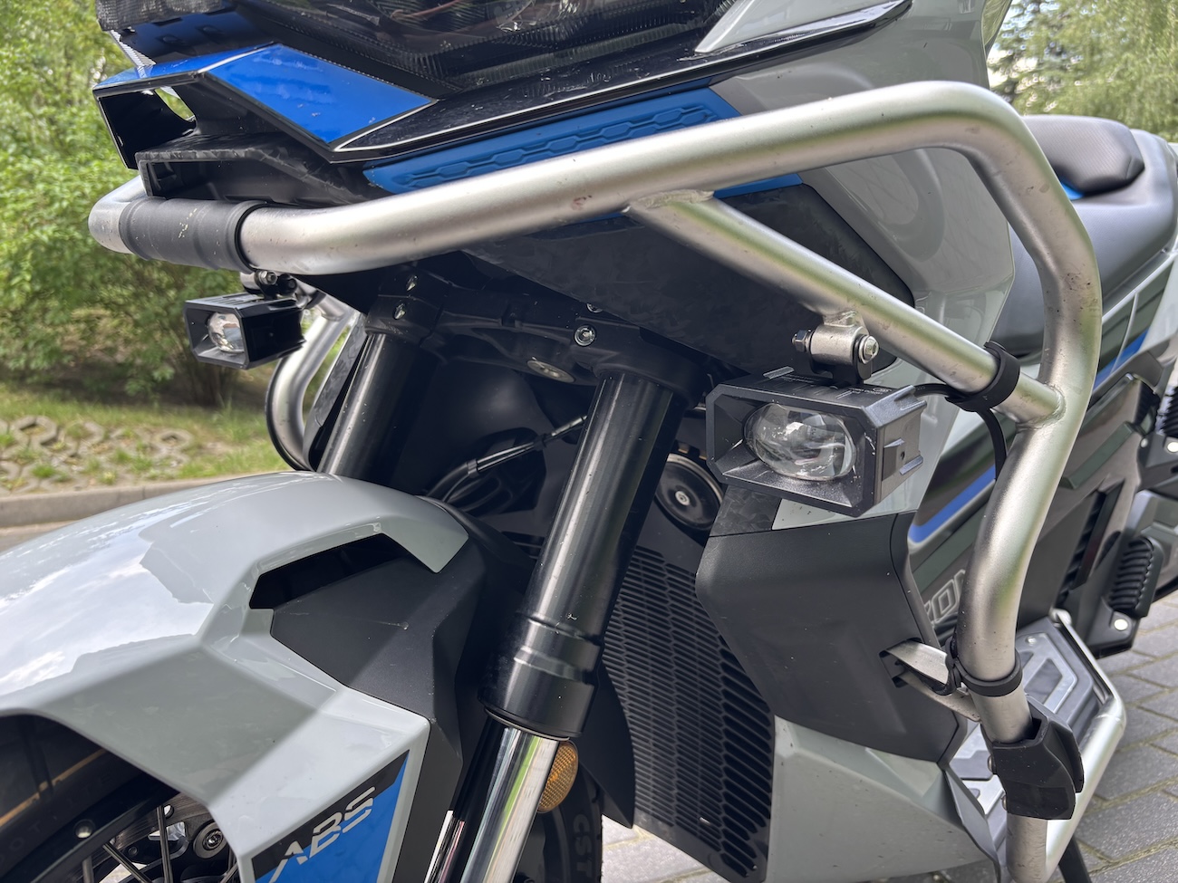 Pełne oświetlenie LED z ciekawie narysowaną tylną lampą wygląda bardzo solidnie i nowocześnie. Przód to symetryczna lampa LED, która mogłaby dawać trochę więcej światła, choć zakręty doświetla całkiem nieźle. Tu jednak z pomocą przychodzą halogeny doświetlające drogę, z możliwością świecenia na biało, żółto albo w trybie stroboskopowym. Impreza w lesie? Czemu nie.