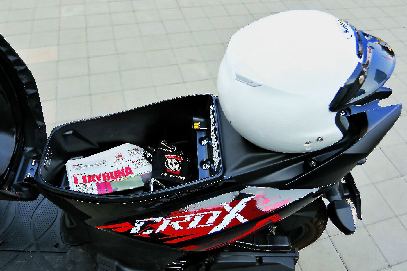 Ciekawym zabezpieczeniem antykradzieżowym jest typowy dla skuterów SYM centralny wyłącznik prądu umieszczony w schowku pod kanapą. Tam też zmieścimy kask typu jet (lecz integralny już nie wejdzie).