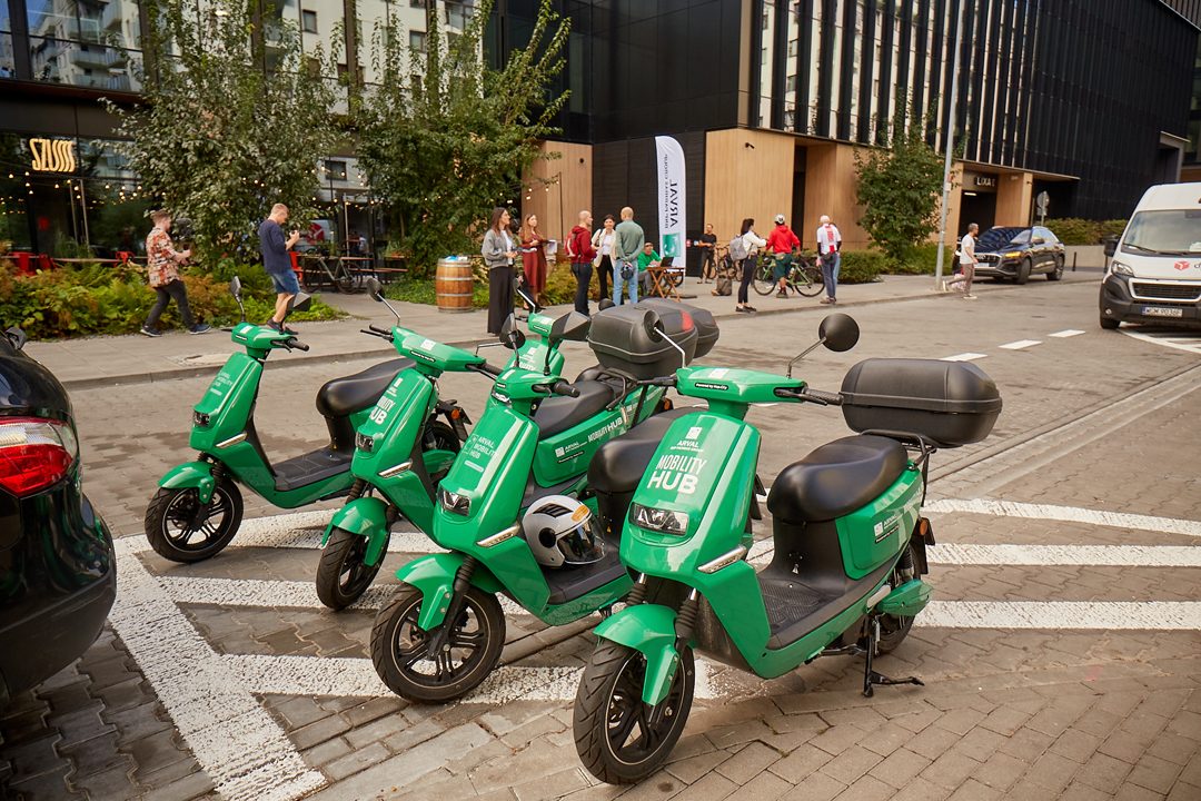 Test miał rozpocząć się na Bemowie na parkingu jednego z hipermarketów, ale już droga z przedmieść Warszawy, z mojego domu, na miejsce startu napełniła mnie pozytywnymi odczuciami. Zamiast stać w korku na remontowanych wówczas Alejach Jerozolimskich, elegancko ominąłem stojące samochody przy lewej krawędzi jezdni, skracając sugerowany czas przejazdu z 45 do 25 minut. Pomimo chłodnej jesiennej aury, ortalionowa kurtka i jeansy motocyklowe skutecznie ochroniły od chłodu, a poranne słońce miło pomogło zamaskować „radość” z konieczności wstania o 6 rano. Na początku wydarzenia spotkaliśmy naszych konkurentów, ruszających ze startu innymi środkami transportu, to jest: samochodem, samochodem elektrycznym, rowerami (klasycznym i wspomaganym elektrycznie), komunikacją miejską oraz hulajnogami na wynajem. Po wymianie uprzejmości wyruszyliśmy wszyscy punktualnie o godzinie 7:30. Cała trasa miała około 6 km długości i przebiegała przez typowe, dwupasmowe arterie miejskie jakich wiele w Warszawie. Fragmentami znajdowały się także na niej buspasy, z których skwapliwie skorzystaliśmy, omijając korek. No właśnie, korek. Samochody utknęły, a my przejeżdżaliśmy między nimi, ruszając zawsze pierwsi ze świateł. Tutaj ujawniła się pewna niedogodność, mianowicie skuter Lecha należał do kategorii AM, a więc mocno ograniczonej w kwestii prędkości maksymalnej. Przez to niejednokrotnie byliśmy przeganiani lub… nazwijmy to kulturalnie „blisko wyprzedzani” przez mniej uprzejmych użytkowników aut, których i tak potem wyprzedzaliśmy na kolejnym postoju.