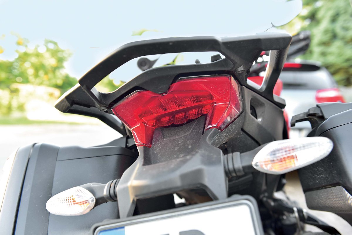 Wysokość siedzenia jest bardzo dogodna i wynosi 840 mm (akcesoryjne siedzenie ma regulację w zakresie 820 – 860 mm). Jeśli porównamy te wartości z potężniejszą wersją 1200 Enduro, to jest o czym myśleć: 870 mm (opcjonalnie z regulacją 890 mm – 850 mm). Kilka centymetrów różnicy może być istotne w podróży.