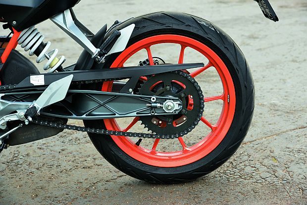 Duke 390 jest zgrabnym motocyklem. Ma dynamiczną linię i młodzieżowe malowanie. Do tego kolorystyka – rozpoznawalna i energetyzująca: połączenie czerni, bieli i pomarańczu skutecznie przyciąga wzrok. Niezwykle wyraziste felgi nie pozwalają Duke’owi pozostać niezauważonym. W tych barwach jest coś magnetycznego, jak w dojrzałych pomarańczach. Po prostu chce się zatopić zęby w miąższu. Podobnie jest z Dukiem – trudno mu się oprzeć i koniecznie chce się go dosiąść.