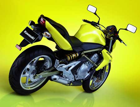 Całkowicie nowy silnik nie ma już nic wspólnego z wywodzącym się jeszcze z połowy lat 80. twinem. 650 ccm pojemności skokowej w dwóch cylindrach, napęd rozrządu poprowadzony z prawej strony, wtrysk paliwa, wałek wyrównoważający, sześć biegów. Także przestrzenna rama spawana ze stalowych rur o dużej średnicy nie ma nic wspólnego z klasyczną ramą ER-5. Stalowy wahacz odświeża zapomniane nieco rozwiązanie o nazwie cantilever, jednak, o dziwo, pojedynczy amortyzator zainstalowany jest asymetrycznie, z boku. Natomiast jak najbardziej en vogue są zębate tarcze hamulcowe, i to, uwaga!, przy obu kołach. Przednie koło wyposażone jest w dwie tarcze. Jak na motocykl klasy popularnej, Kawasaki stroi się „na bogato”. Co więcej, za dopłatą będzie można mieć układ ABS. Także dobór opon świadczy, że mamy do czynienia z konstrukcją przyszłościową. Z przodu opona 120/70ZR17 jak z Superbike’a, z tyłu 160/60ZR17, a więc jak na motocykl klasy 600 ccm całkiem ambitnie.