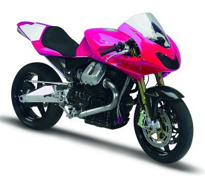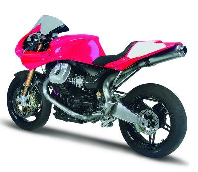 Założenia konstrukcyjne były proste. Motocykl ma być jak najbardziej zwrotny i łatwy w prowadzeniu. Dlatego dążono do zoptymalizowania rozkładu obciążeń na osie, zminimalizowania masy i uzyskania jak najkrótszego rozstawu osi. To ostatnie było szczególnie trudne ze względu na znaczną długość zespołu napędowego ze wzdłużnie ułożonym wałem korbowym. Wobec niewielkiego czasu przeznaczonego na opracowanie nowego motocykla pomocne okazało się sięgnięcie na półkę z gotowymi podzespołami. Silnik jest rozwojową wersją napędu Moto Guzzi Centauro z rozrządem HC i z czterozaworowymi głowicami. W wersji Corsa dysponuje on mocą 122 KM przy 8000 obr/min osiąganych z 1225 ccm. Sześciostopniowa skrzynia biegów pochodzi z Moto Guzzi V11. Dla zmniejszenia długości motocykla wpleciono blok napędowy w strukturę nośną, przykręcając bezpośrednio do skrzyni biegów łożyskowanie wahacza. Maksymalne wydłużenie aluminiowego, mającego 495 mm długości wahacza tylnego koła przyczynia się z kolei do zmniejszenia reakcji wału napędowego przy zmiennych obciążeniach silnika.