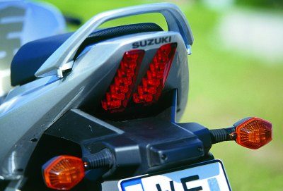 Oby najrzadziej używanym dodatkiem do nowej SV 650S były światła awaryjne. Taki mały guziczek na kierownicy. Natomiast dużo więcej pożytku będzie z przednich reflektorów. W tej dyscyplinie aktualna SV 650S nokautuje wręcz poprzednika. Duża powierzchnia odbłyśników sprawia, że nawet za dnia SV 650S widać z daleka, a po zmroku świecąca jednocześnie para reflektorów znakomicie oświetla drogę i pobocze. Kudy do nich pojedynczemu, soczewkopodobnemu ślepiu starej SV!