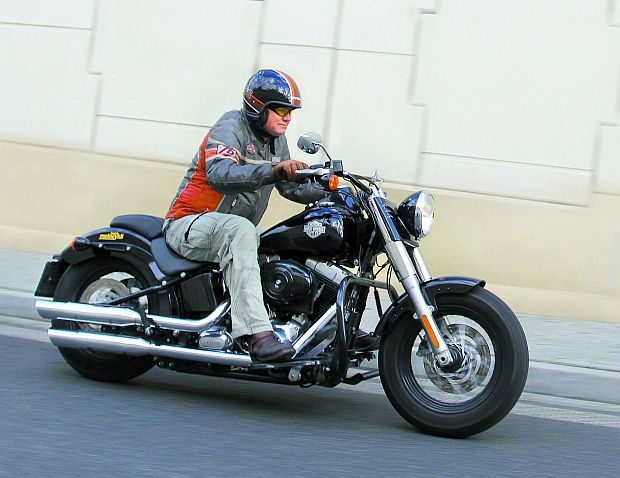 Slim prowadzi się bardzo łatwo. Jak na swoją masę i układ zawieszeń jest zadziwiająco zwrotny i zwinny. Łatwo poddaje się zakrętom, trzymając zadany tor jazdy. Pamiętajmy jednak ciągle, że to nie sportowy „litr” i szybsze wejście w łuk sygnalizowane jest lekkim wężykowaniem maszyny, a każde, odrobinę głębsze pochylenie zostaje zaznaczone efektami akustyczno-wizualnymi, czyli tarciem podestów o asfalt. No cóż, taka jest cena jazdy pięknym, niskim motocyklem z zawieszeniem typu Softail.