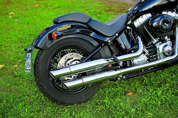 W gamie modeli Harleya Slim należy do rodziny Softail. Znaczy to ni mniej, ni więcej tylko tyle, że udaje, iż ma sztywna ramę, czyli tylne koło bez amortyzacji. Oczywiście, w rzeczywistości tak nie jest, a elementy tłumiąco-resorujące tylny trójkąt ramy ukryte są dosyć sprytnie gdzieś w czeluściach między skrzynią biegów a błotnikiem. Tym rozwiązaniem Harley nawiązuje do głębokiej tradycji, chociaż trzeba przyznać, że gdy firma wprowadzała w połowie lat 50. model Duo Glide – pierwszy z resorowaniem tylnego koła – reszta cywilizowanego świata od dawna stosowała takie rozwiązania. Niemniej to właśnie H-D wylansował na nowo modę (skwapliwie przejętą przez konkurencję) na tylne zawieszenia udające „sztywne”.