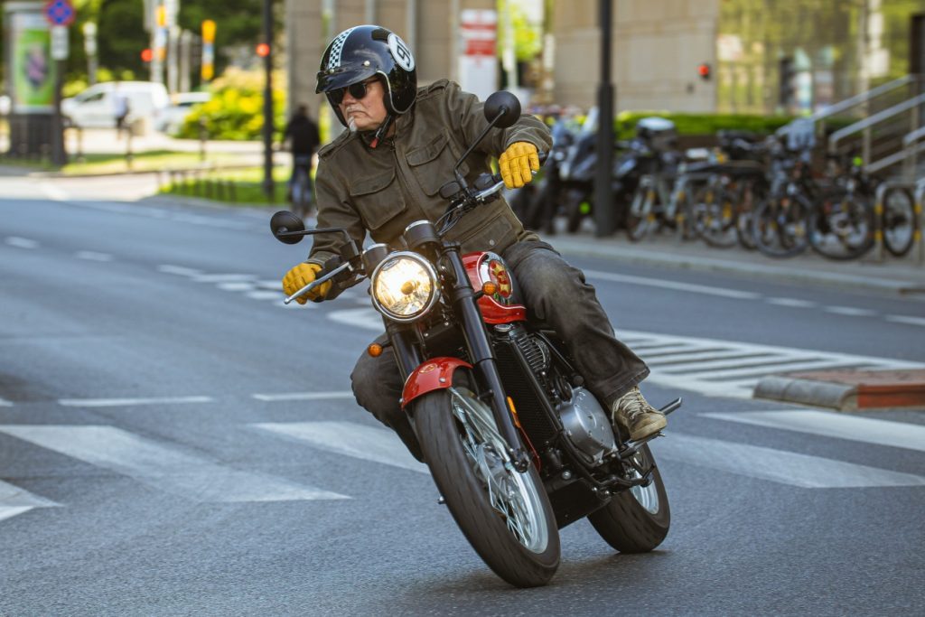 Pierwsze wrażenie z jazdy – jak na klasycznym Junaku, tylko znacznie szybciej. Drugie wrażenie – musiałem nieco pogrzebać w pamięci i powrócić do czasów, kiedy miałem okazję przejechać się oryginalnym Gold Starem 500 Ryśka Szatkowskiego, ze 30 lat temu. Wtedy Besówka wydawała mi się po prostu wściekle szybka i narowista. W przypadku tej nowej nie mam takiego wrażenia – raczej jakbym siedział na turystyku. W porównaniu z innymi jednocylindrowymi neoklasykami jest jednak bardzo dobrze. Czuć moc, da się bez problemu pojechać 150 km/h, co dla Royala Enfielda Bulleta, a tym bardziej Benelli Imperiale jest nieosiągalne. Na tle tych maszyn Gold Star rzeczywiście prezentuje się “sportowo”. Do Triumpha Bonneville oczywiście Gold Stara nie ma sensu porównywać, bo anglik dysponuje jednostką napędową typu twin, w dodatku o znacznie większej pojemności.