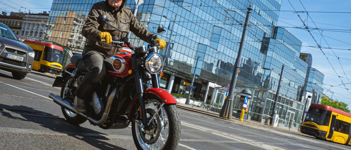 Miałem okazję w kilka dni ujechać niemal 1000 km i czułem się naprawdę komfortowo. Pozycja za sterami jest bardzo relaksująca, a prędkość przelotowa rzędu 130 km/h nie stanowi dla motocykla problemu, chociaż oczywiście osłony przed wiatrem nie ma żadnej (jechałem w kasku otwartym, w zwykłych okularach). Ze względu na naleśnikowatą, typowo brytyjską kanapę, plecak bez problemu przytroczyłem do części przeznaczonej dla pasażera i było OK. Pięciostopniowa skrzynia biegów jest bardzo dobrze zestopniowana i precyzyjna. Bez problemu da się zapinać biegi w górę i w dół, bez używania sprzęgła. Z samym silnikiem były jednak pewne problemy. Od czasu do czasu po prostu gasł na luzie. Co prawda uruchamiał się potem bez problemu, ale samo zjawisko było dosyć irytujące.