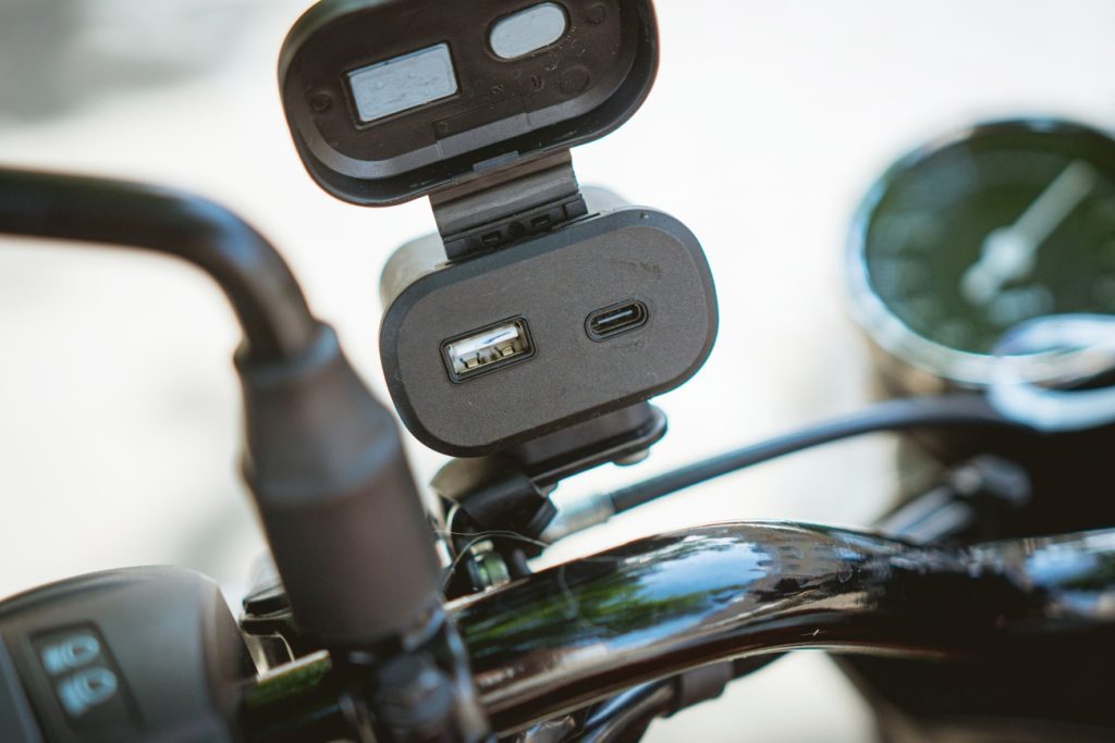 Jest, jak jest i ważne, że marka w ogóle wróciła na rynek. Stylistycznie nowy Gold Star nawiązuje do pierwowzoru, ale jest jakby nieco mniej finezyjny. Chromowany zbiornik paliwa, okrągły emblemat z gwiazdą, szprychowane koła, płaska kanapa, układ zegarów i lampy – wszystko mniej więcej na temat. Jeden tylko element drażni mnie niemiłosiernie – bardzo dziwaczna i niepasująca do reszty, wystająca ostentacyjnie na kierownicy, przy lewej manetce “puszka prądowa”, czyli element, z wejściem USB. Co ciekawe, elegancko i dyskretnie tuż przy ramie, znajdziemy drugie gniazdo. Poza tym – wszystko jest w porządku – nawet niewielki zespół kontrolek umieszczony na lampie między zegarami (kiedyś siedział tu amperomierz), zgrabnie komponuje się z całością. Całkiem sporą chłodnicę dyskretnie upchnięto z przodu ramy. Jednym słowem stylistom udało się bardzo przyzwoicie nawiązać do dawnej dobrej, angielskiej szkoły budowy motocykli.