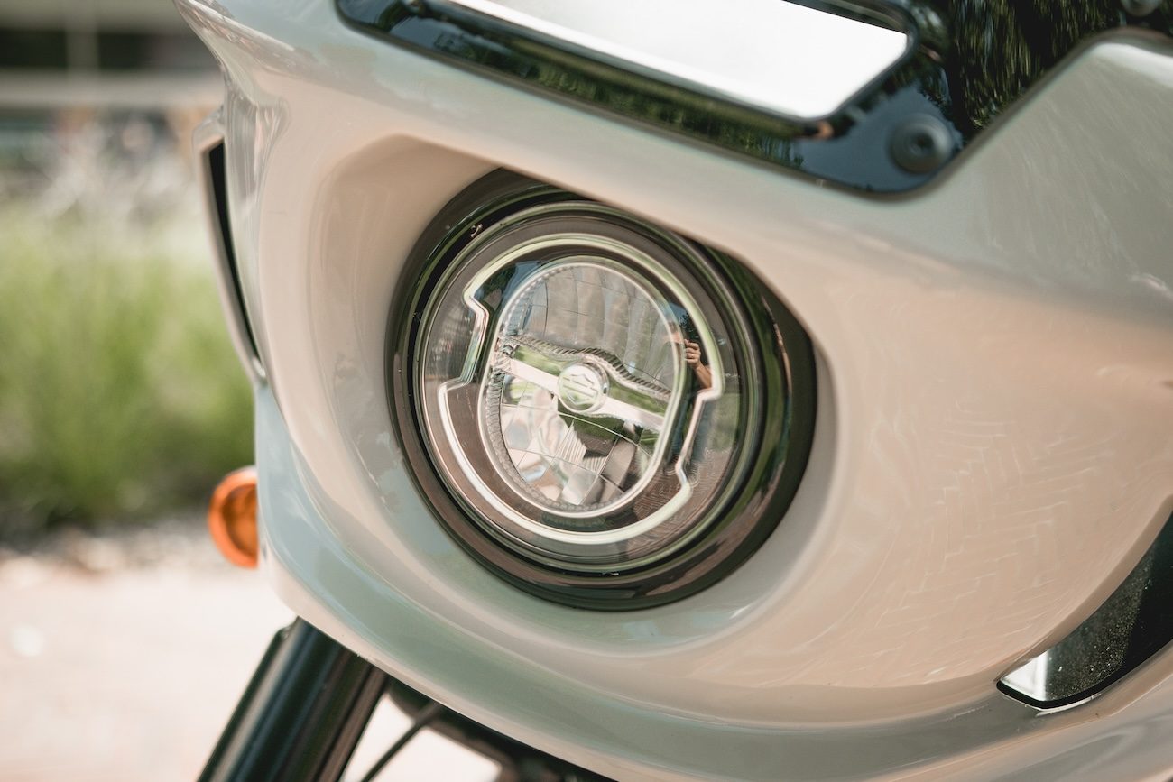 W zakresie wskaźników Harley-Davidson tworzy swoje motocykle według dwóch koncepcji: albo jest to rozbudowana jak w samochodzie potężna deska rozdzielcza, albo jej antyteza – czyli niemal kompletny jej brak. Low Rider prezentuje sobą to drugie rozwiązanie. Zestaw wskaźników ograniczony jest do minimalistycznego ciekłokrystalicznego wyświetlacza wkomponowanego we wspornik kierownicy i zespołu kontrolek. Całość panelu to pewnie jakieś 20 cm2, czyli znacznie mniej niż nawet skromny smartfon. W ostrym słońcu czasami słabo widać wyświetlane wielkości. W takim minimalizmie czasami można wpaść w pułapkę. Widywałem już urządzenia (typu interkomy), które wyposażone były tylko w dwa małe guziczki. Wydawałoby się, że nie ma nic prostszego w ich obsłudze, tymczasem do urządzenia dołączona jest zawsze grubaśna książka obsługi, w jakich sekwencjach je przyciskać, żeby skorzystać ze wszystkich możliwych funkcji w rzeczywistości bardzo skomplikowanego urządzenia. Na szczęście inżynierom Harleya udało się uniknąć tego błędu – wyświetlacz obsługiwany tylko jednym guzikiem udało mi się ogarnąć bez użycia instrukcji. Być może dlatego, że nie musiałem wyszukiwać ustawień zawieszeń, map zapłonu, poziomów czułości kontroli trakcji, bo po prostu ich nie ma, a wyświetlacz informuje jedynie o kilku parametrach jazdy i pracy jednostki napędowej. I bardzo dobrze, bo mogłem skupiać się jedynie na czerpaniu radości z jazdy, a nie badaniu dostępnych opcji ustawień czegokolwiek. Przy czym trzeba podkreślić, że minimalistycznie to nie znaczy nie nowocześnie. Motocykl wyposażony jest w oświetlenie typu full lead, które jednak też nie jest przesadnie rozbudowane. Z tyłu skromna lampka w jednej obudowie z migaczami, z przodu też niewielki, w klasycznej formie reflektor. I absolutnie nic więcej, żadnych podświetleń spodu, boków i dyskotek. Pod względem ilości chromów i barokowych ozdóbek też jest raczej oszczędnie. Motocykl utrzymany jest w kolorach raczej stonowanych, mało krzykliwych, ze sporą ilością matu, a jednak prezentuje się bardzo godnie.