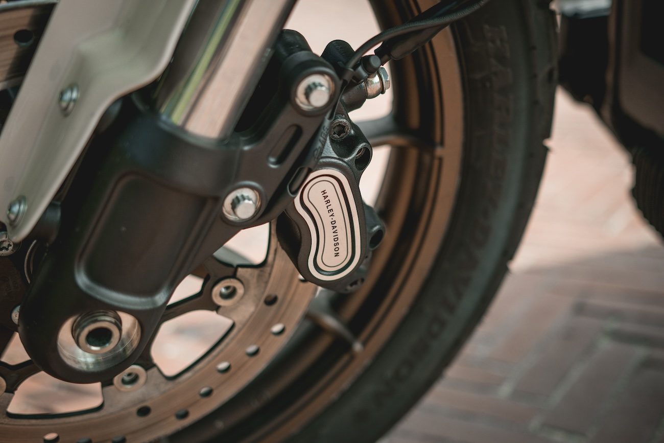 Za potężnym silnikiem bez problemu nadążają hamulce i zawieszenia. W tym wypadku Harley zdecydował się na układ Reflex Brembo (sygnowany jednak własnym logotypem), który gdy trzeba bardzo zdecydowanie wkracza do akcji, a jednocześnie jest dobrze wyczuwalny i dozowalny. Przynajmniej w obrębie przedniego koła, bo ten w tylnym służy raczej do korekty toru niż skutecznego spowalniania. Ale przecież niektóre teorie mówią, że właśnie taki rozkład siły hamowania właściwy jest maszynom sportowym.