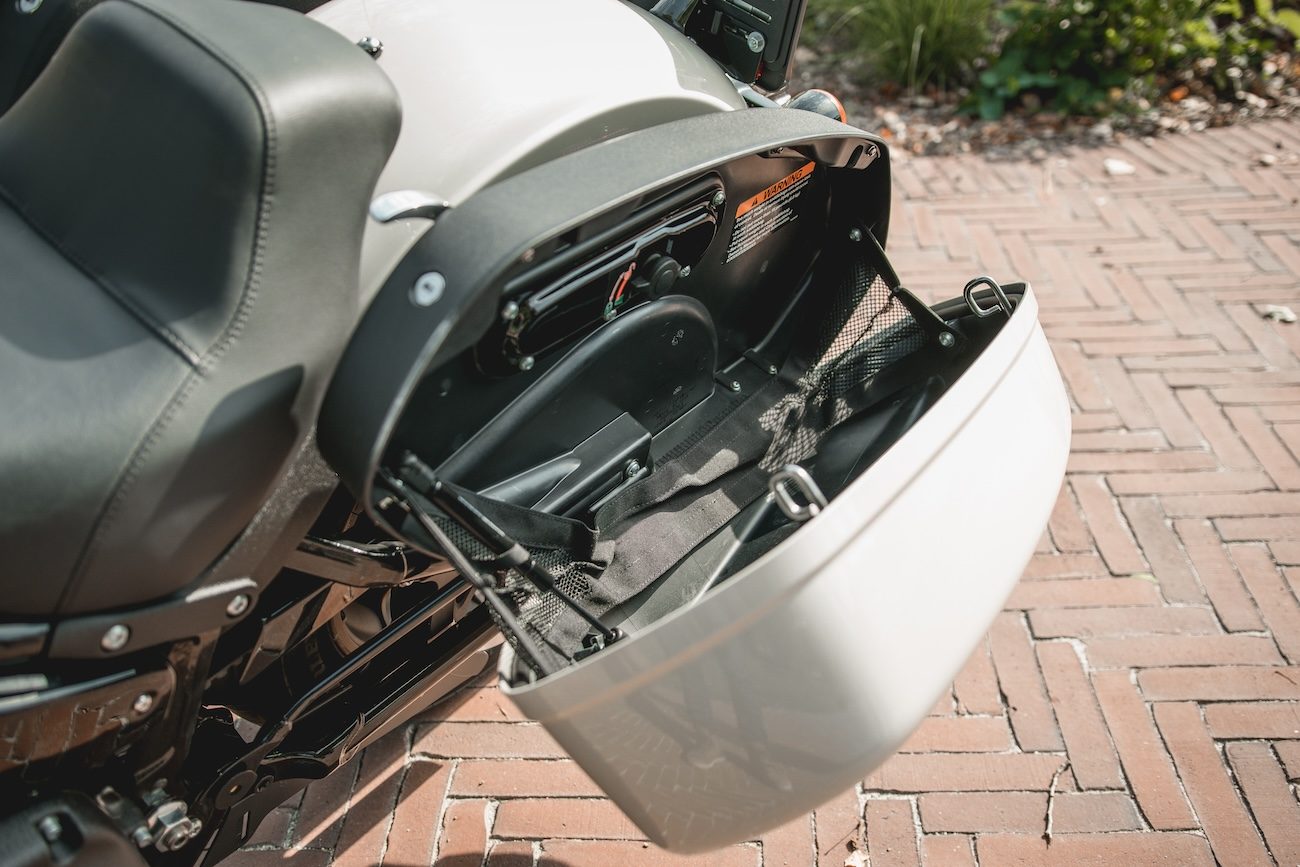 Co do właściwości turystycznych motocykla – wyposażony jest standardowo w kufry boczne, szeroką owiewkę i tempomat. ST jest maszyną jednoosobową, więc jeżeli tylko masz wprawę, to upchniesz tam wszystko, co niezbędne do weekendowego wyjazdu. Mi udało się jakimś cudem wsadzić tam całkiem spory laptop. Owiewka (a jakże, z deflektorem) jest szeroka, a szyba niezbyt wysoka, ale przy tempie jazdy zgodnym z przepisami całkowicie wystarczająca. Stylistyką nawiązuje nieco do lat 80. Gdy jednak chcesz zbliżyć się do górnej granicy możliwości Harleya, wtedy poczujesz prawdziwy wiatr (czy raczej orkan) we włosach. Co do komfortu jazdy – jeżeli komuś nie pasuje pozycja z wysoko uniesionymi kolanami, może po prostu położyć na podnóżkach łydki. Sprawdziłem – da się i można w tak wyluzowanej pozycji połykać kolejne kilometry. Gdy będziemy jechać spokojnie, paliwa w zbiorniku wystarczy na co najmniej 300 km, gdy jednak maszynę pognamy nieco szybciej, to zasięg zmniejszy się do nieco ponad 200 km. Jak na turystę, to nie są wybitne osiągnięcia, jak na sportowca, być może tak.
