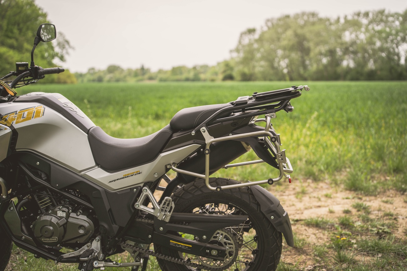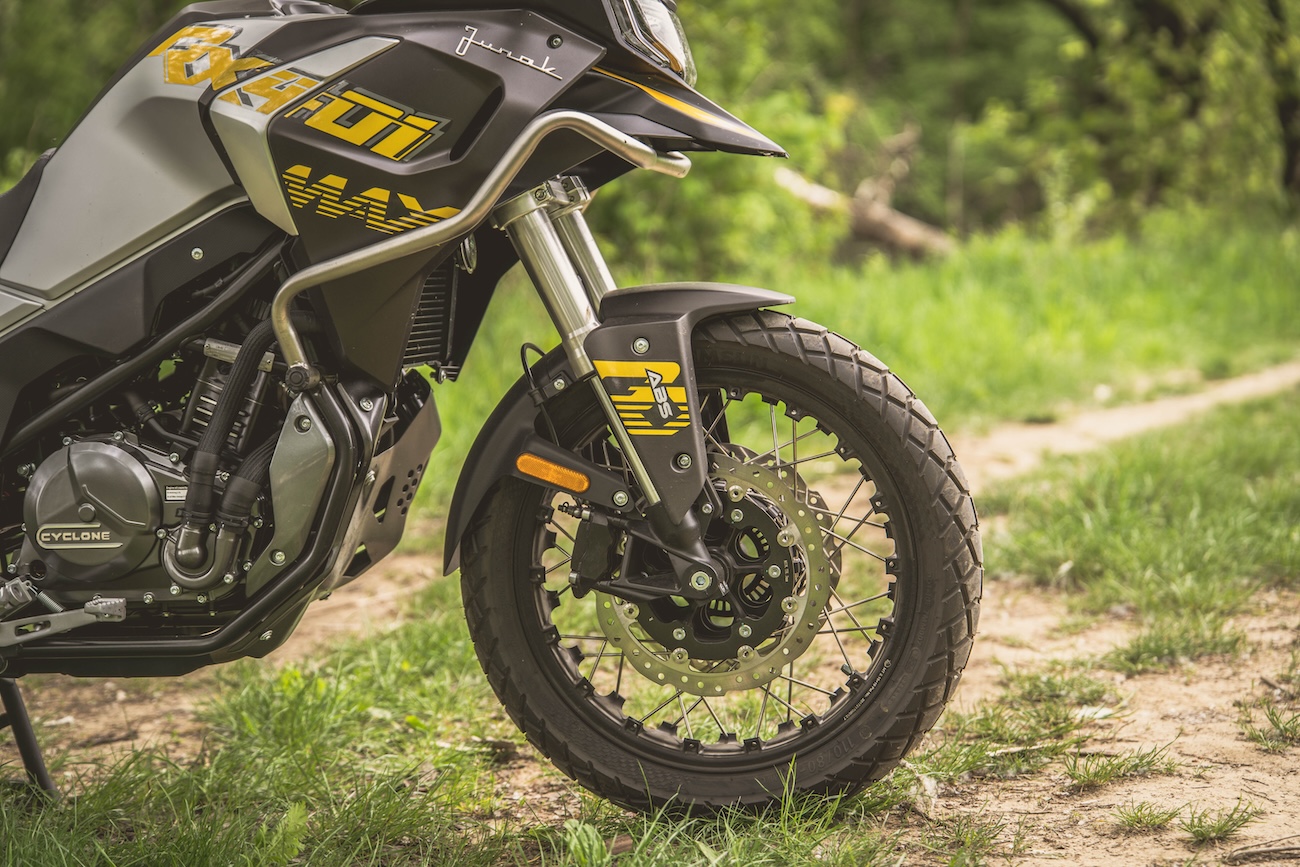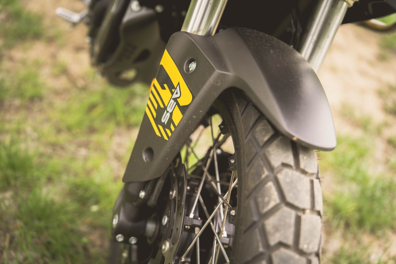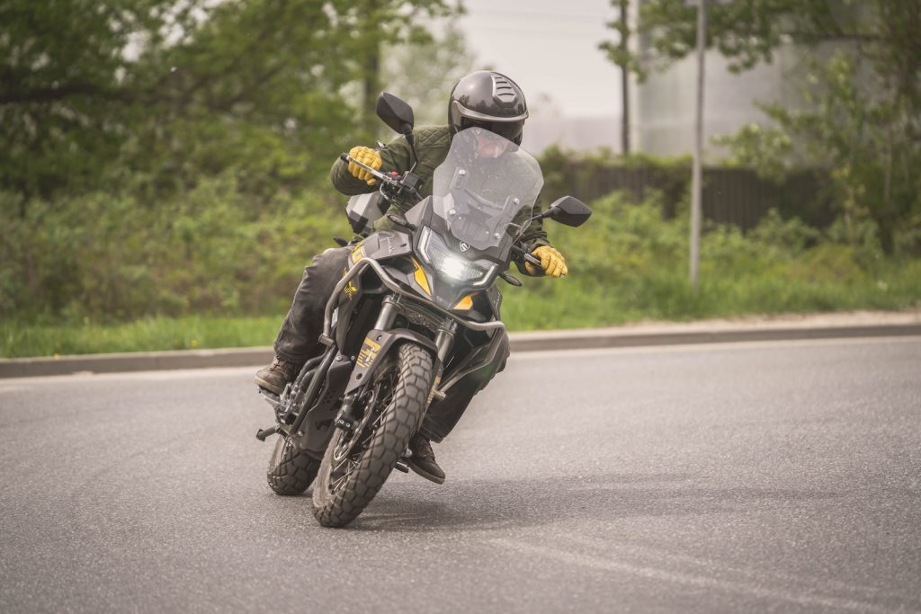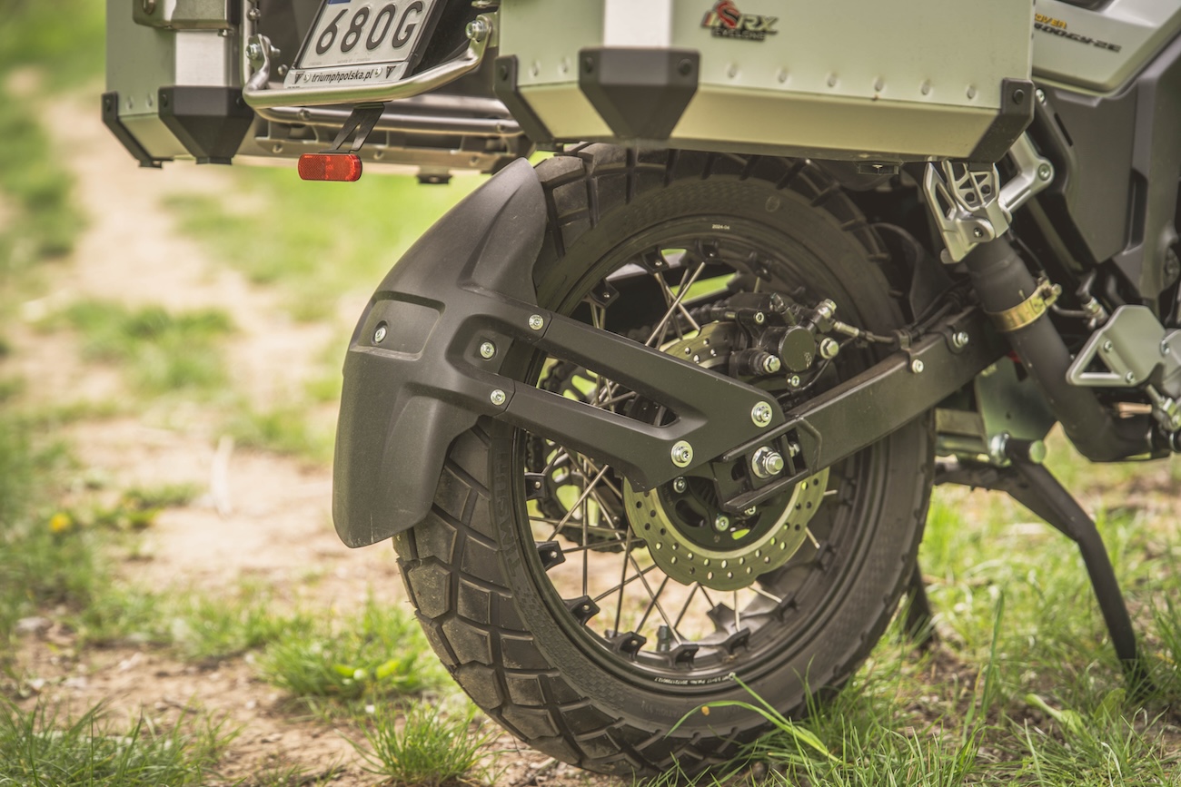 Dualowe opony zdają egzamin zarówno na asfaltach, jak i szutrach, po których jeżdżę podczas mazurskich wypraw. Zawieszenia, co oczywiste przy bezwstydnie niskiej cenie motocykla, nie są z najwyższej półki, ale jakoś tam dają radę praktycznie w każdych warunkach drogowych i co ważne, mają regulację – zarówno tył, jak i przód.