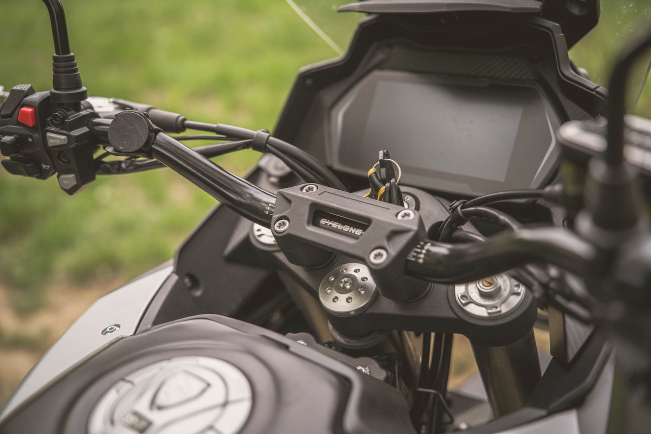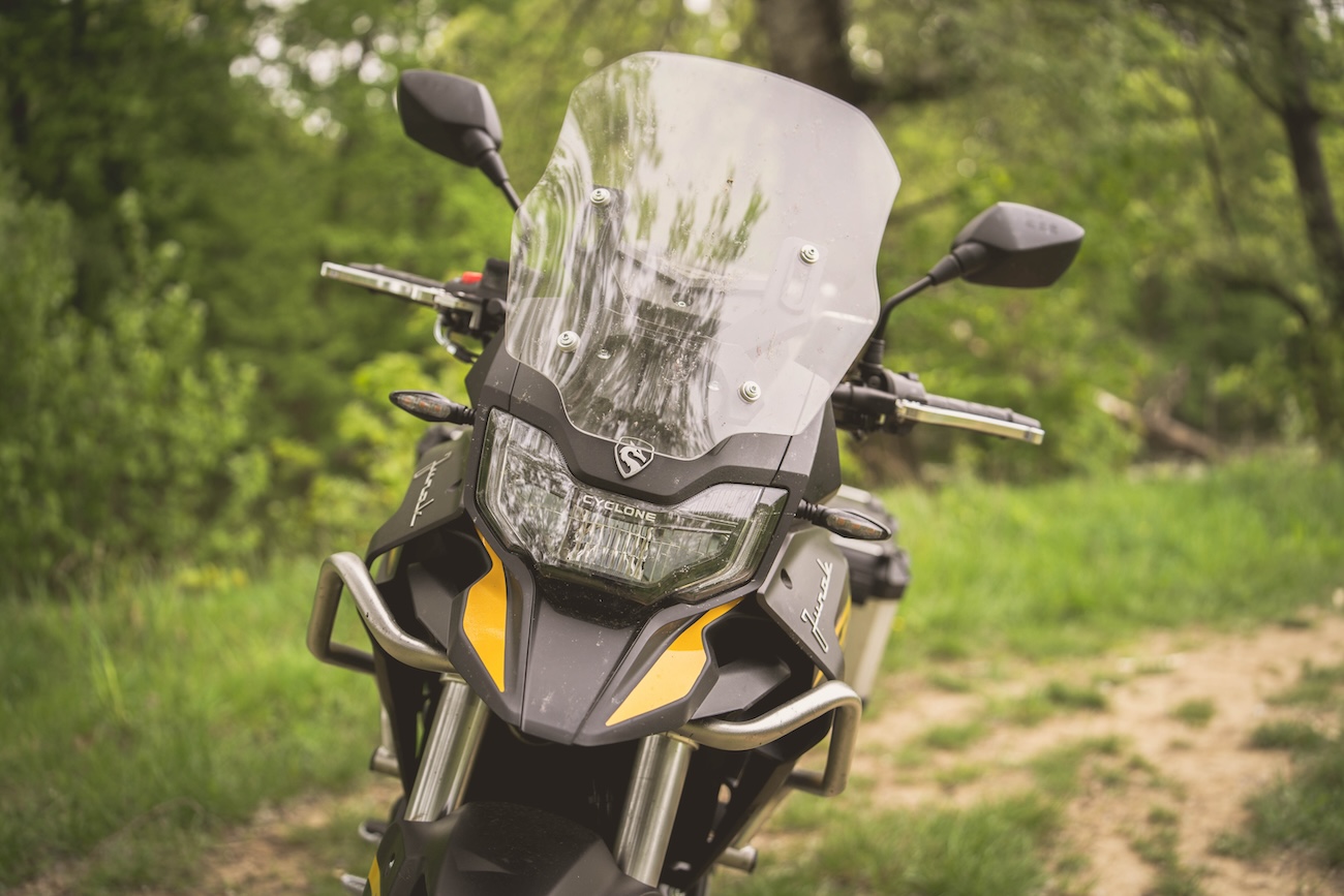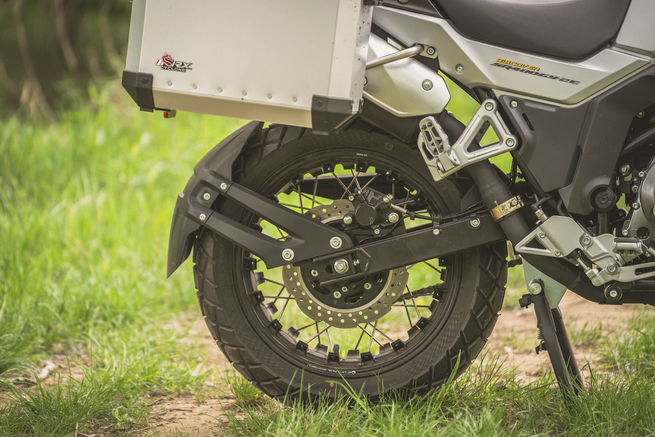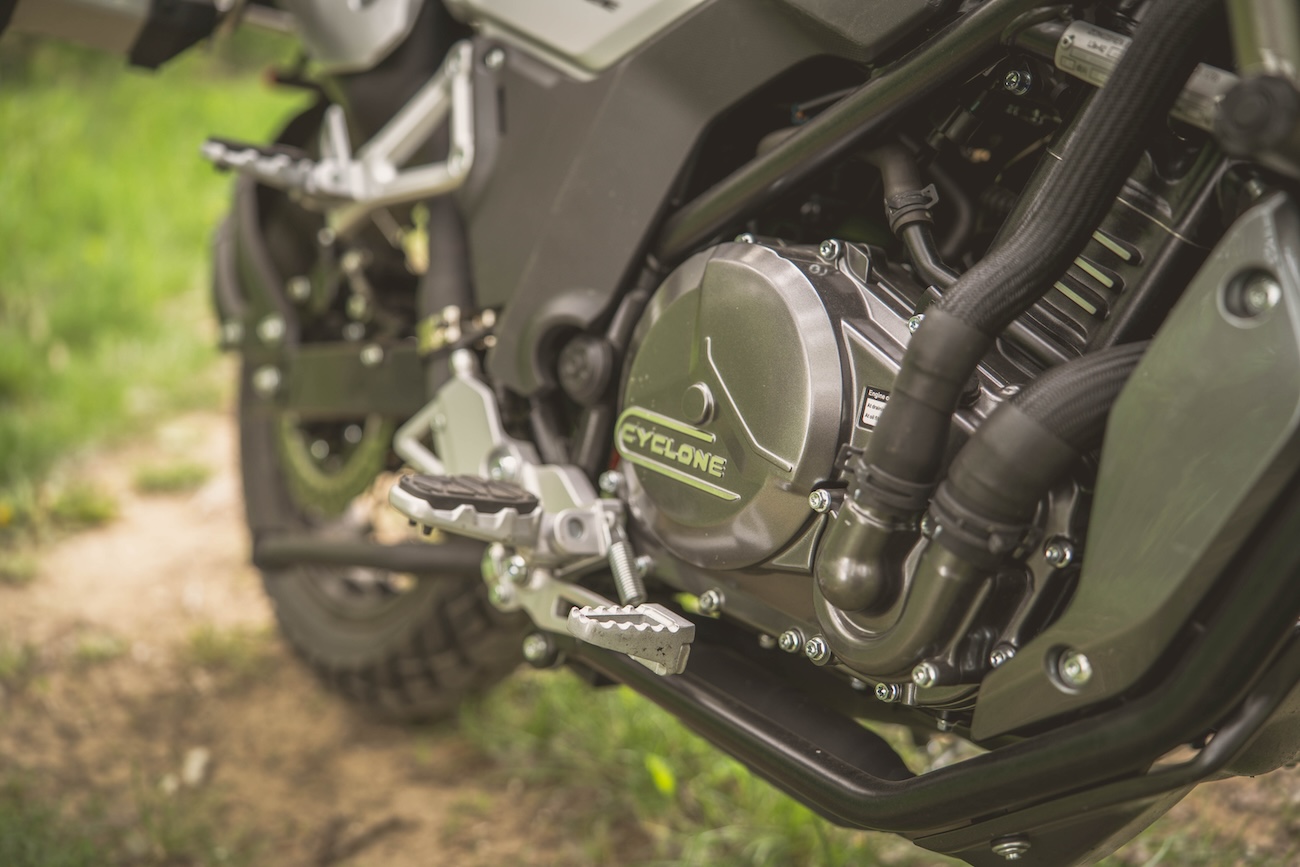 Dualowe opony zdają egzamin zarówno na asfaltach, jak i szutrach, po których jeżdżę podczas mazurskich wypraw. Zawieszenia, co oczywiste przy bezwstydnie niskiej cenie motocykla, nie są z najwyższej półki, ale jakoś tam dają radę praktycznie w każdych warunkach drogowych i co ważne, mają regulację – zarówno tył, jak i przód.