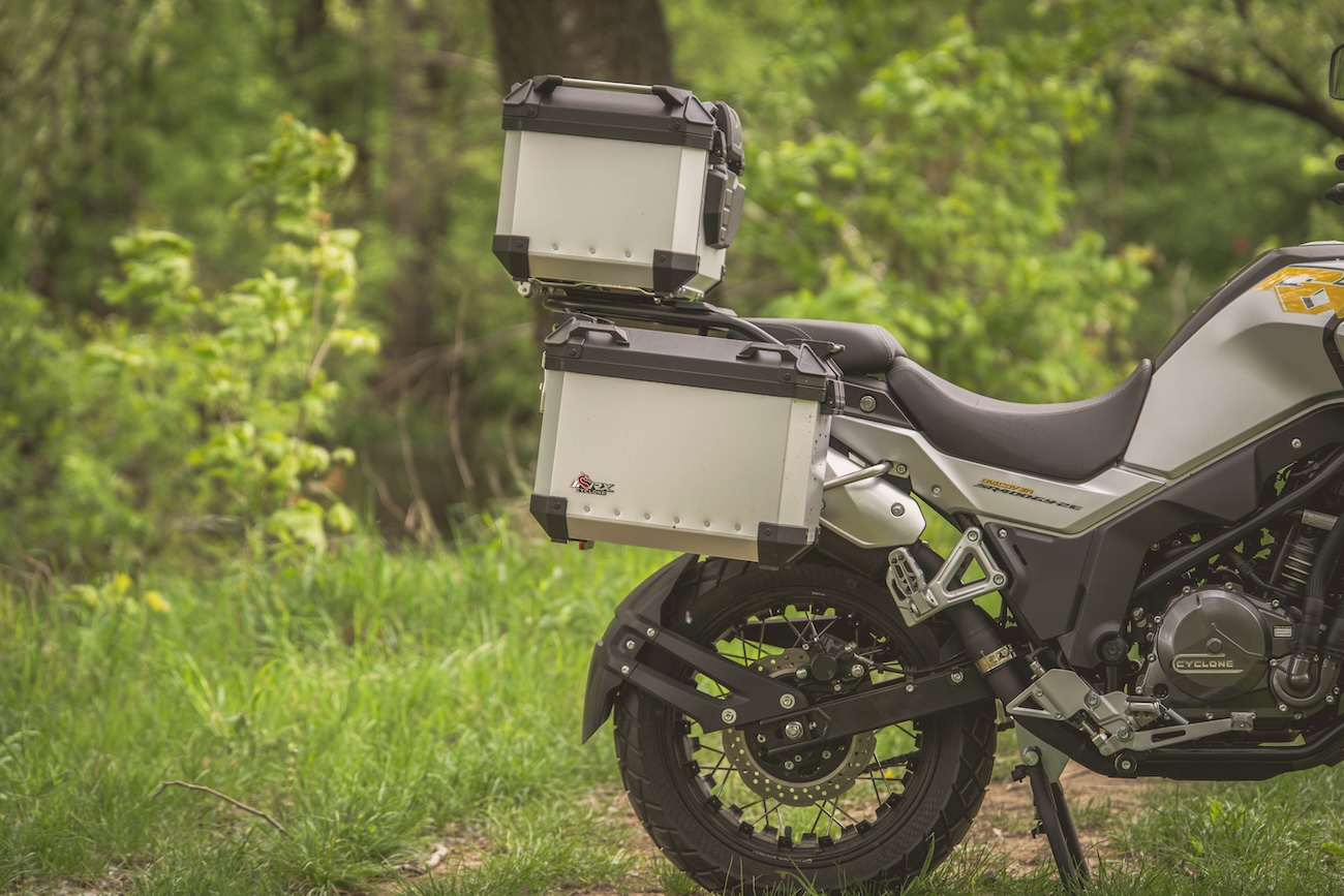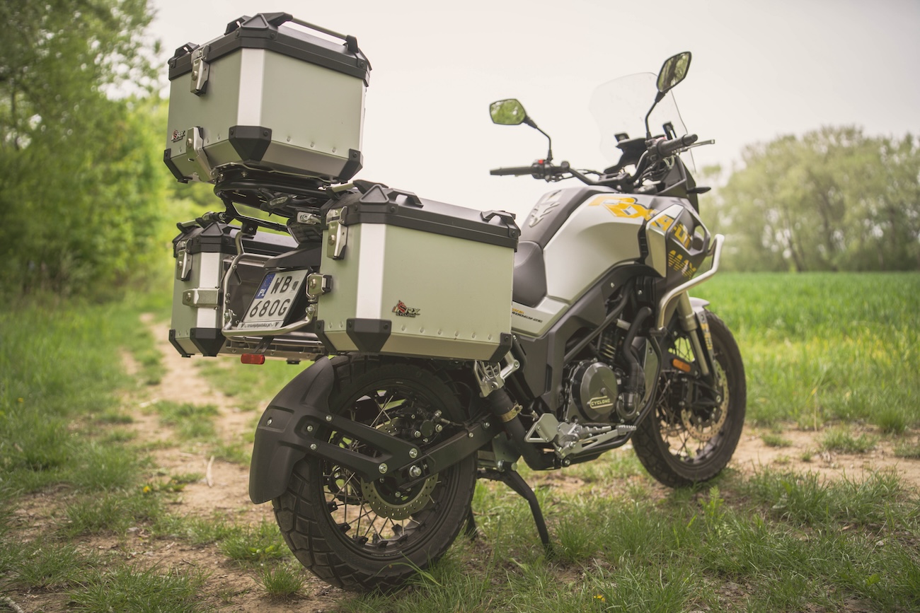 Jak wspominałem, jednym z ważnych czynników wyboru była cena motocykla. Zacznijmy więc z grubej rury – BMW GS 1300 kosztuje o ponad 100 tysięcy więcej, więc zwyczajnie mnie nie stać. Podobnie jest z Triumphem Tigerem i to w mniejszej wersji 900 ccm. Honda Africa Twin jest trzykrotnie droższa od Junaka. W klasie 500-600 ccm jest kilku chińskich równie dobrze wyposażonych konkurentów, jak Voge 525 DSX, Benelli TRK 502, czy Kove ADV 510 X, ale po przymiarkach wydawały mi się zbyt duże do miasta. Może się starzeję? Z kolei maszyny klasy 300 ccm – BMW GS 310, Voge, czy Zontes 310 T okazują się zbyt wolne w dłuższych przelotach. Podobną moc i pojemność oferują też KTM 390 Adventure (a zatem i Bajaj Dominar 400) oraz Triumph Scrambler 400, ale dysponują one silnikami typu singiel, a ja wolę twina. Przy okazji – chyba jedynie Junak oferuje, za tak śmiesznie niska cenę 2 tysięcy zł – zestaw naprawdę solidnych kufrów z kompletem stelaży. Zbadałem temat i okazuje się, że bardziej “markowi” producenci potrafią żądać za podobny set sporo ponad 10 000 zł, a to przecież niemal połowa ceny RX-401.