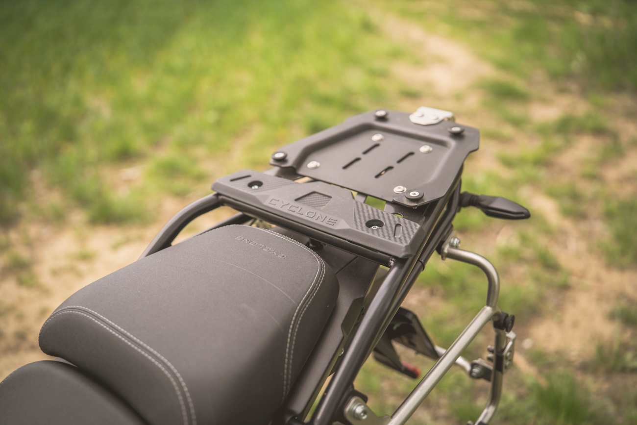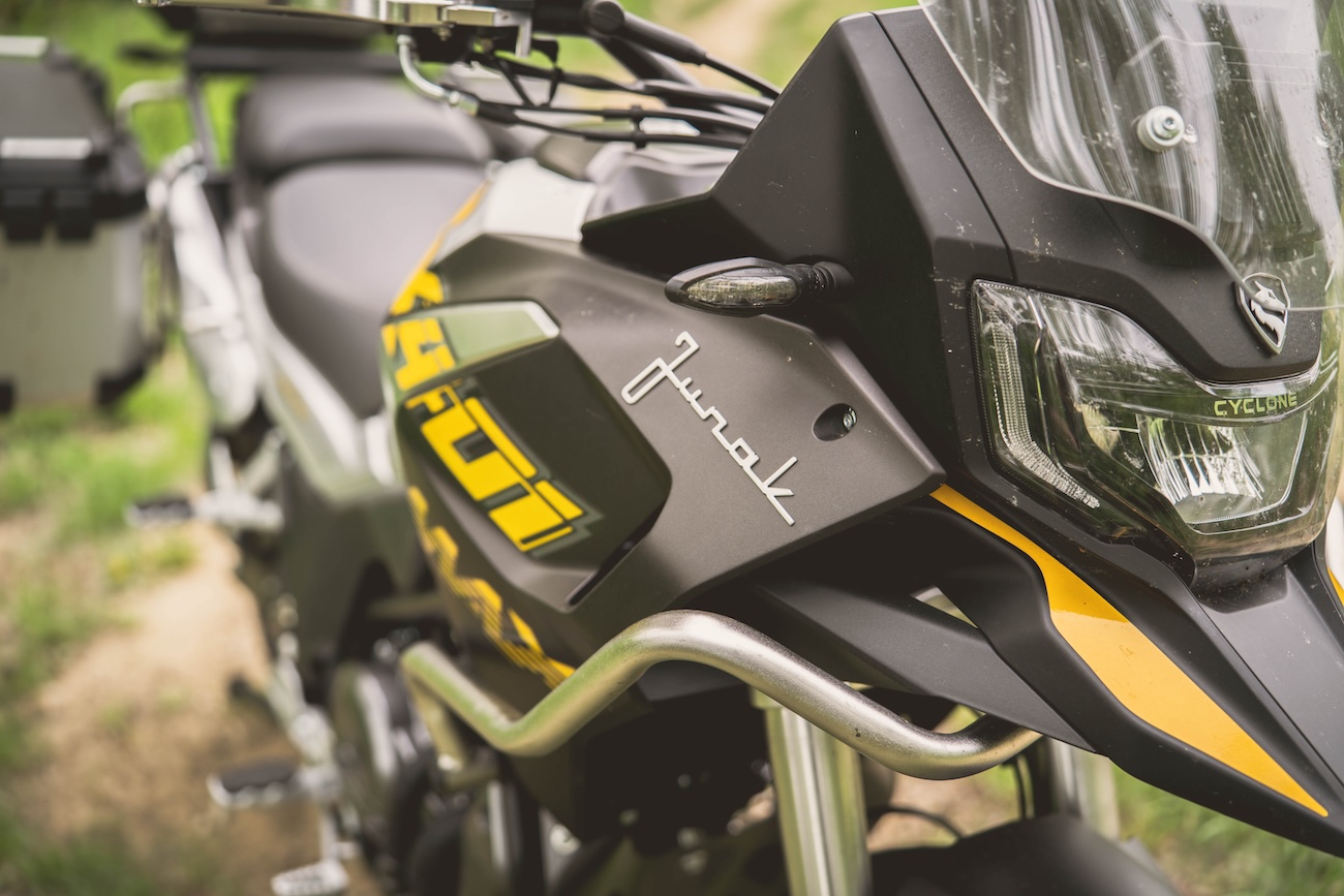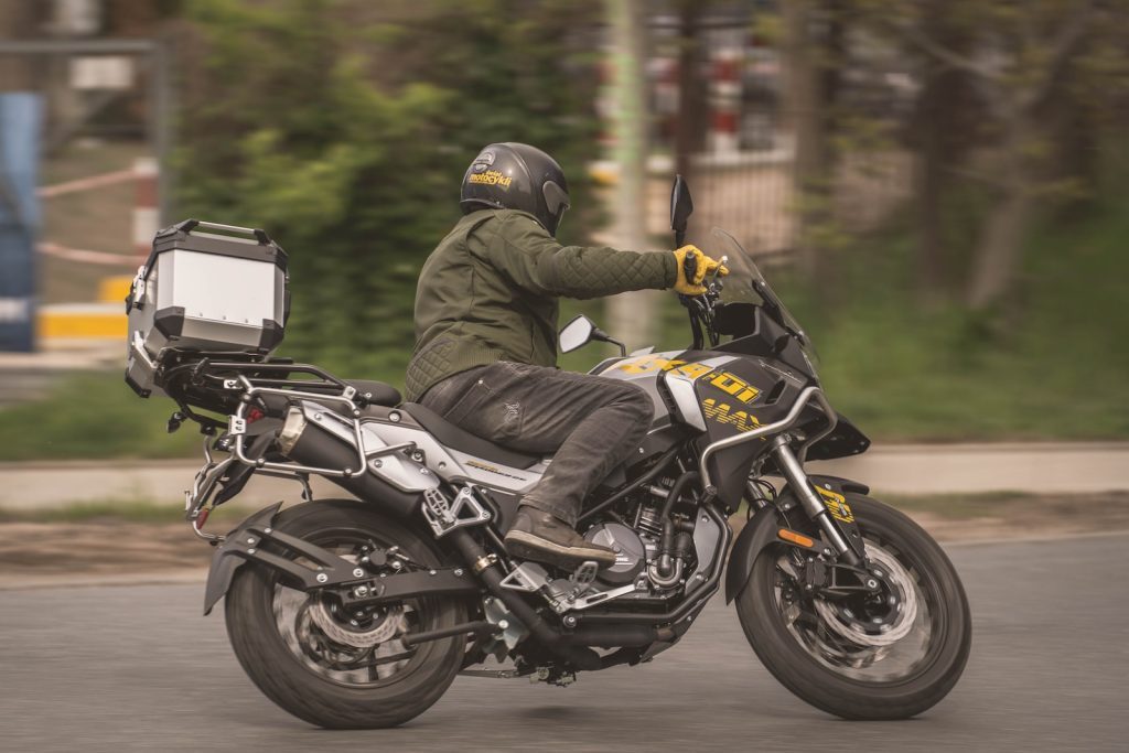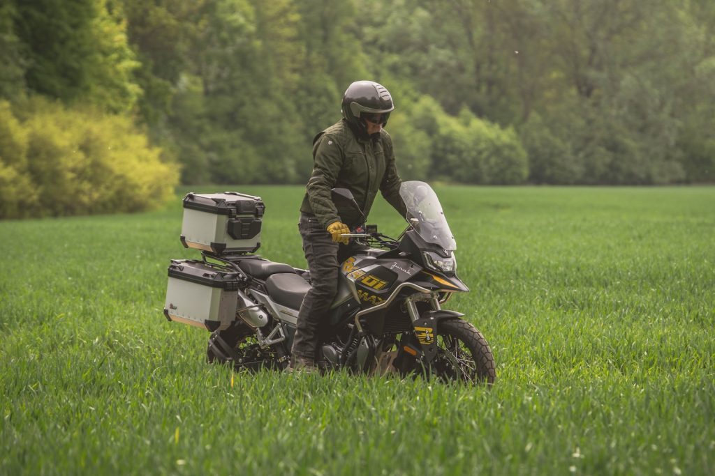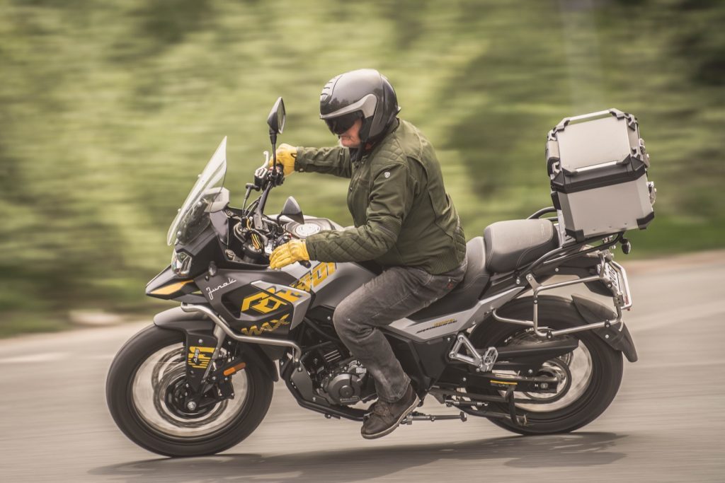 Przez niemal pół roku, dzięki uprzejmości importera, firmie Almot, miałem okazję ujeżdżać ich testowy egzemplarz i przekonałem się o jego niezawodności. Junaczek nie miał lekkiego życia, bo przede mną dosyć intensywnie eksploatował go Tobiasz Kukieła, znany z bezkompromisowego stylu jazdy. I nie udało mu się go popsuć, co świadczy o wybitnej odporności konstrukcji. Motocykl wyposażony jest we wszystko to, co potrzebne jest mi do szczęścia, a w dodatku nie ma przekombinowanej elektroniki. Chociaż z drugiej strony, trochę brakuje mi na wyświetlaczu informacji o chwilowym spalaniu i zasięgu, co przydaje się w podróży. Gmole, centralny podnóżek, płyta pod silnikiem, regulowane klamki, a przede wszystkim fantastyczny zestaw aluminiowych kufrów… Czego więcej chcieć? W dodatku siedzisko umieszczone jest dosyć nisko, na wysokości 810 cm, co przy moim mizernym wzroście ma znaczenie. Dodatkowe gadżety, jak handbary, światła przeciwmgielne czy podgrzewane manetki – dokupię. Oczywiście na chińskich aukcjach, żeby Junak nie miał kompleksów. Ale nawet bez tych upiększaczy motocykl prezentuje się nowocześnie i elegancko. Chyba najbardziej podobają mi się w nim koła – z klasycznymi szprychami i nietypowym rozwiązaniem aluminiowych felg, z nadlewami pod każdą szprychę osobno, żeby dobrze działała bezdętkowość.