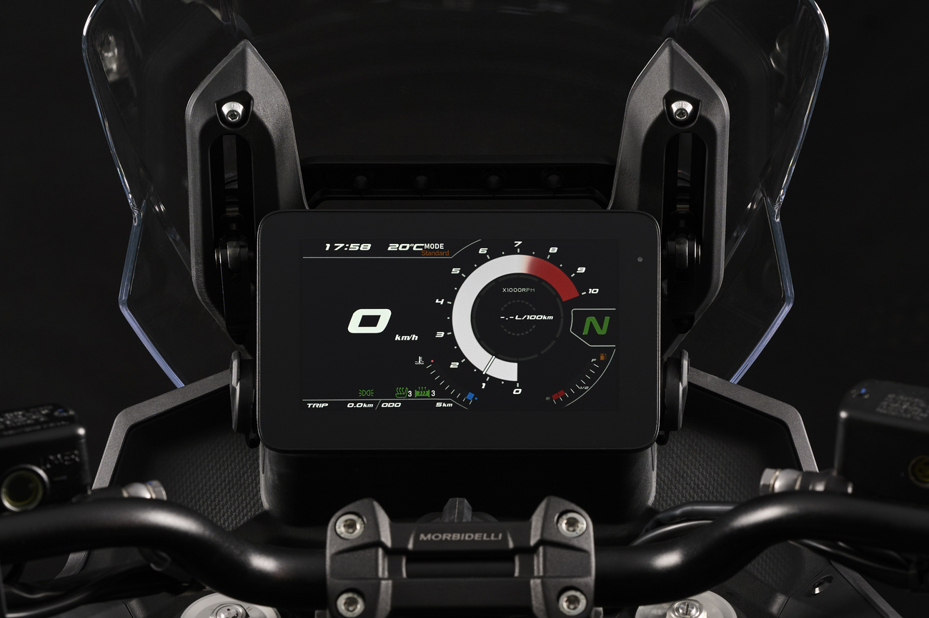 Swoją premierę motocykle Morbidelli już pod chińskimi skrzydłami miały podczas wystawy EICMA w roku 2020, oferując dwa modele – M 502N i C 1002V. O ile mniejszy motocykl był co prawda bardzo nowoczesną i poprawną, ale jednak zwyczajną konstrukcją, to większa maszyna dla rynku była po prostu szokiem. Chiński motocykl z litrowym silnikiem V2, to było coś nieprawdopodobnego. V-Twin o pojemności 997 ccm, generuje moc 88,4 KM i 89 Nm momentu obrotowego. Jak na debiutanta, to całkiem miłe parametry. Chwilę później na rynku pojawiła się nieco uterenowiona wersja tego motocykla – T1002VX. Postawiono go na szprychowych kołach – z przodu 19”, z tyłu 17”. Szprychy zgodnie z najnowszą modą widoczne są po zewnętrznej stronie aluminiowych felg. Koła obuto fabrycznie w opony Pirelli Scorpion Rally STR. Do własnej konstrukcji jednostki napędowej dołożono komponenty najbardziej uznanych producentów – w pełni regulowane zawieszenia KYB, hamulce J.Juan i elektronikę – cornering ABS Bosch Pro z możliwością wyłączenia. Do tego dodano 4 tryby jazdy, elektronicznie sterowanie przepustnicami Ride by Wire i wielki jak telewizor wyświetlacz TFT 7” z systemem aplikacji mobilnej Morbidelli Connect, dającej naprawdę spore możliwości. Standardowo montowany jest system monitorowania ciśnienia w oponach. Prawie zapomniałbym o tempomacie oraz podgrzewanych manetkach i siedzisku kierowcy, które są również na liście seryjnego wyposażenia. Motocykl ubrany jest na bogato, a w dodatku pod względem wykonania, jakości użytych materiałów i stylistyki – prezentuje się godnie.