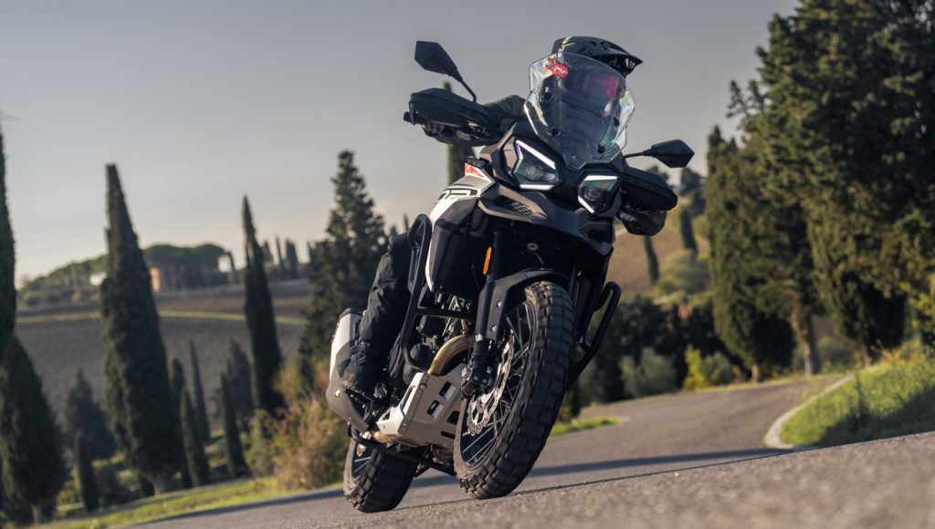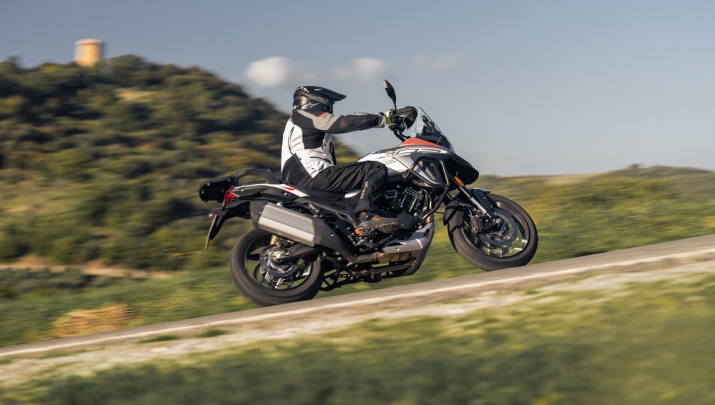 Pozycja za sterami jest komfortowa, a sterowanie, dzięki szerokiej kierownicy (z handbarami) bardzo łatwe. Doskonale sprawdza się hydrauliczne sprzęgło, które pracuje bardzo lekko. Skrzynia biegów jest precyzyjna, a ruchy dźwignią – krótkie i jednoznaczne. Nawet w ustawieniu trybu jady “sport” brakowało mu nieco mocy, a w porównaniu z BMW GS 1300, czy Triumphem Explorerem 1200, to przepaść. Ale przecież nie każdy użytkownik maszyny typu ADV musi być od razu wyścigowcem. Mnie łagodny charakter silnika Morbidelli odpowiadał, ponieważ do turystycznych wycieczek po asfaltach Europy nie trzeba niczego więcej.