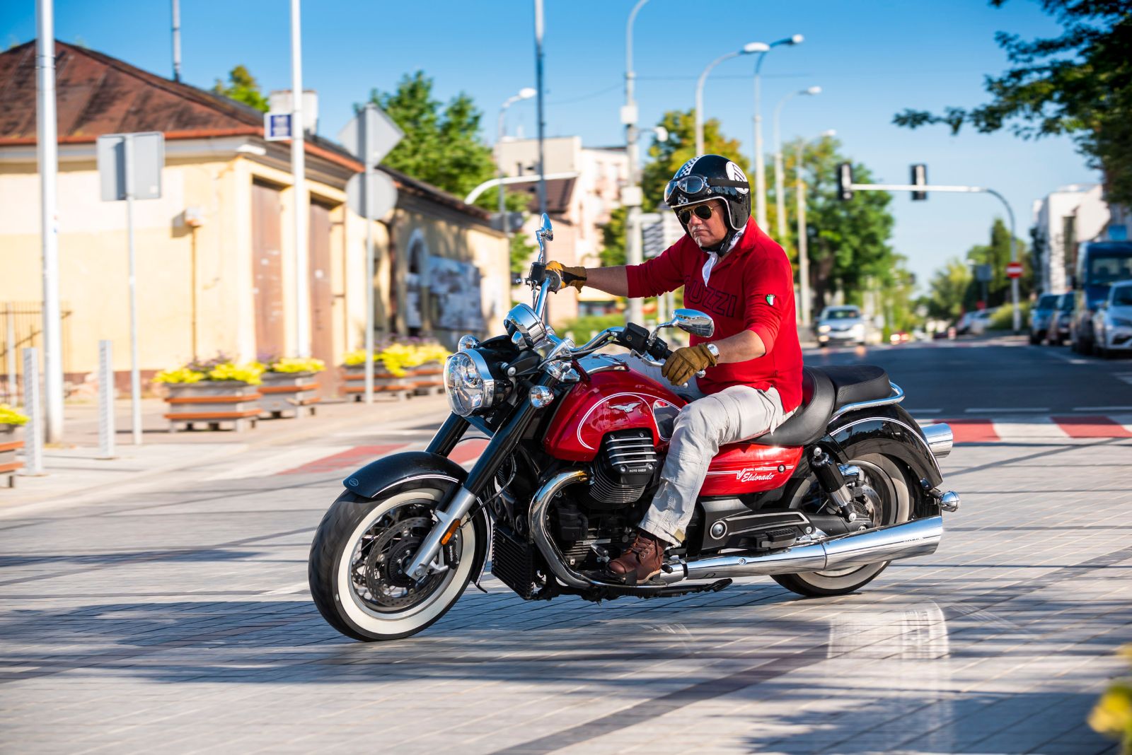 Eldorado zaprezentowany w sezonie 2014, moim zdaniem został dopasowany do realnych możliwości zarówno jednostki napędowej, jak i podwozia. Jest po prostu dużym, pięknym cruiserem w bardzo klasycznej formie. Niczego nie udaje i oferuje dokładnie to, co obiecuje swoim wyglądem. Oczywiście od czasu pierwszej wersji z roku 2014 wprowadzano różne modyfikacje, ostatnie w sezonie 2017, bo trudno, żeby było inaczej – świat szybko podąża do przodu, szczególnie w dziedzinie elektroniki. Przeprojektowane zostały więc mapy zapłonów, chociaż silnik nie zyskał przez to więcej pary, a jedynie inne charakterystyki krzywych mocy i momentu obrotowego. Kontrola trakcji ma teraz trzy poziomy czułości i steruje się nią poprzez nowe zespoły przełączników. Pozostały natomiast charakterystyczne dla tej jednostki napędowej wibracje, które Guzzisti kochają, a inni motocykliści już nieco mniej. Przy wyższych obrotach silnika zanikają, ale na wolnych całość dość spektakularnie się trzęsie. Motocykl ma po prostu swój charakter.
