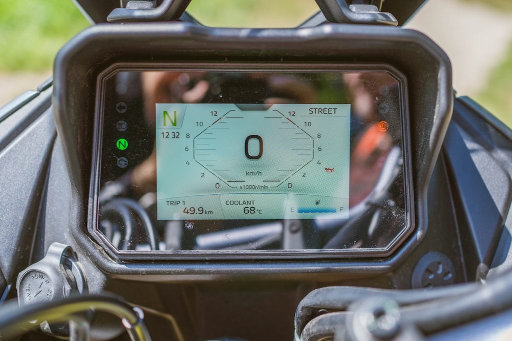 Pojawił się także kolorowy wyświetlacz TFT. Może nie aż tak wielki, jak w „paratablety” w niektórych chińskich konstrukcjach, ale też całkiem przyzwoity (przekątna 5”), oczywiście z możliwością parowania z innymi urządzeniami poprzez system bluetooth i bezpłatną aplikacją MyRide. Mapa i nawigacja turn-by-turn dostępne są po zainstalowaniu na telefonie kolejnej „apki”, Garmin StreetCross. Przy lewej manetce, pojawił się więc joystick obsługujący ekran. Jest na tyle intuicyjny, że nawet ja, z racji wieku nieco wykluczony cyfrowo, nie potrzebowałem do niego instrukcji obsługi. Wszystko jest jasne i klarowne.