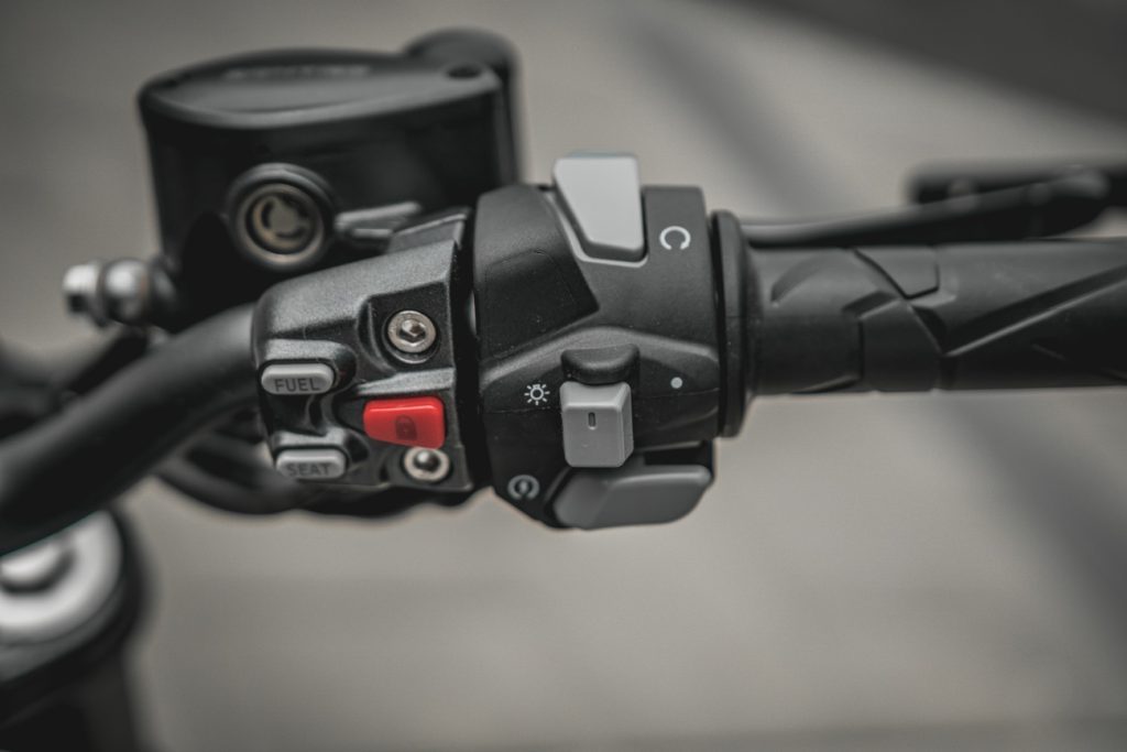 Wzorem starszych braci z rodziny Zontesów, również w 125 GK wszystkie ważniejsze funkcje życiowe motocykla realizowane są elektrycznie. Od zamka wlewu paliwa czy siodła, po blokadę kierownicy. W niczym mi to nie przeszkadza, pod warunkiem, że działa prawidłowo, a w tym wypadku nie odnotowałem ani jednego potknięcia. Tyle tylko, że takie rozwiązanie powoduje, że przy manetkach kierownicy znajdziemy całą masę przycisków, których jednak nie należy się obawiać, tylko zwyczajnie nauczyć. Skoro ja dałem radę, to każdy da! Jedynie procedura wyłączania maszyny jest minimalnie skomplikowana, bo uruchamianie jest wyjątkowo proste. Zamiast kluczyka mamy pizdryk, zwany fachowo responderam, który po prostu trzeba mieć w kieszeni. Jedyny czerwony guzik, przyciśnięty na krótko powoduje zwolnienie blokady kierownicy i uruchomienie życiowych funkcji maszyny. Potem już jest normalnie – przycisk startera i jedziemy. Troszkę trudniej jest przy wyłączaniu motocykla. Najpierw kolejnym przyciskiem trzeba wyłączyć zapłon, kierownicę maksymalnie skręcić w lewo i znowu, tym razem na długo wdusić czerwony przycisk. Ciekłokrystaliczny ekran zgaśnie, a elektryczna blokada zaskoczy z w miarę głośnym kliknięciem.