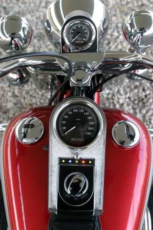 Prędkościomierz w Heritage montowany jest w konsoli zbiornika paliwa. Drogomierz jest ciekłokrystaliczny, a jego funkcje ograniczają się jedynie do pokazywania całkowitego i dziennego przebiegu. W zbiorniku paliwa wbudowano także paliwomierz. Nie jest on ani dokładny, ani czytelny. Jedyna jego zaletą jest to… że jest. Aby nie pomylić go z korkiem wlewu paliwa (umieszczonym po prawej stronie zbiornika), producent opatrzył paliwomierz sporą naklejką z napisem „Do not twist” (ang. nie odkręcać). To na wypadek, gdyby komus przyszło do głowy ukręcić wskaźnik, a potem sądownie nękać producenta. Na kierownicy zamontowano obrotomierz. Nie trzeba filować na niego zbyt często. Na ucho będziemy wiedzieli, kiedy zmienić bieg. W wyposażeniu standardowym oprócz szyby i sakw są też oparcie dla pasażera i light-bar, czyli dodatkowe lampy mijania. Ich włącznik nie jest za subtelny i przypomina przełącznik z radzieckiego ciągnika. Ale za to działa!