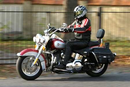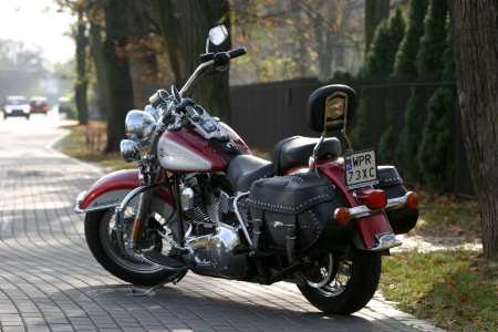Heritage jeździ poprawnie. Nie zachwyca, ale i niczym specjalnym nie zraża. Szeroka kierownica ułatwia manewrowanie przy małych prędkościach. To ważne, bo jeżdżąc nim, nie pragniesz bić rekordów prędkości: 120 km/h w zupełności wystarczy, choć nie stanowi oczywiście kresu możliwości. Przy próbach szybkiego wejścia w zakręt dadzą o sobie znać nisko zamontowane podesty. Zaczynają przycierać znacznie wcześniej, niż byśmy chcieli. A szkoda, bo gdy tak szlifują asfalt, podwozie i opony wykazują jeszcze sporo rezerwy. Problemy zaczynają się przy próbie hamowania. Zwłaszcza awaryjnego. Właściwie we wszystkich Harleyach trzeba przeprosić się z tylnym hamulcem. Tutaj rozkład sił hamowania przód-tył bliższy jest stosunkowi 50/50. Dlatego hamując nie wolno zapominać o „tyle”. Jeśli zaś chodzi o „przód”… No cóż, myślę, że sam Mariusz Pudzianowski nie dałby rady wcisnąć przedniej klamki hamulca tak mocno, by sprawnie zatrzymać te 300 kg. A jeśli użyłby do tego całej pary, to przednie klocki stanęłyby w płomieniach. Jedna tarcza z przodu to za mało przy tej masie. Może i ładnie wygląda ten kulisty kapselek z prawej strony przedniego koła, ale byłoby dużo lepiej, gdyby jego miejsce zajęła druga tarcza.