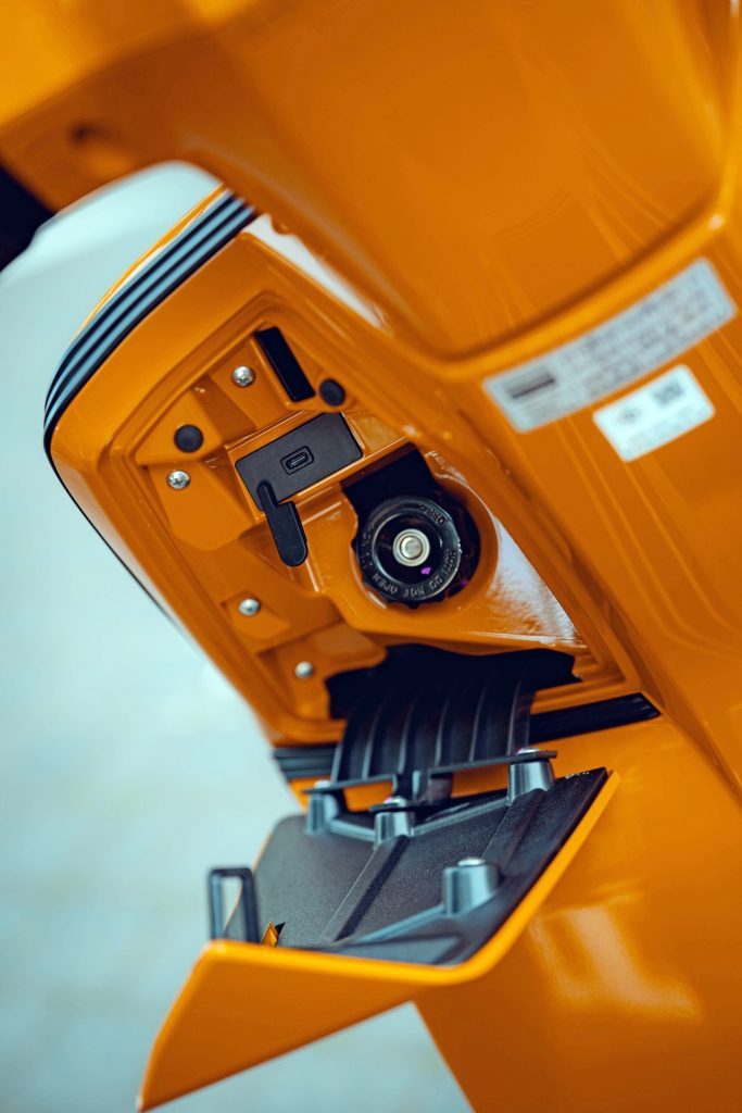 Na szczęście styl nie jest jedynym argumentem w orężu Lambretty. Pierwsze, co rzuciło mi się w oczy to jakość wykonania i przywiązanie do detali. Aluminiowy korek wlewu z rączką ułatwiającą odkręcanie, piękny uchwyt na zakupy pod kanapą, kształt końcówki wydechu, nietuzinkowa tylna lampa zintegrowana z kierunkowskazami, uchwyt dla pasażera dopasowany do kształtu kanapy, czy przełączniki niezalatujące taniochą to tylko początek. Wszystkie elementy skutera są doskonale spasowane, plastiki nie trzeszczą i nie ma mowy, by ktokolwiek użył w jego kontekście słowa „tandetny”.