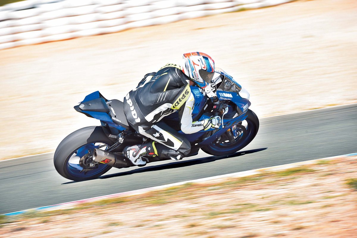 Taka jest ziemia w okolicach Almerii. Miasto leży na południowym wybrzeżu Hiszpanii, więc liche opady deszczu nikogo nie dziwią. Okolica jest świetna na rodzinny wypad motocyklowy, gdyż niezainteresowana kręceniem się po torze lub górskich winklach część składu może wygrzewać się nad morzem. Obiekt Circuit de Almeria znajduje się 50 kilometrów w głąb lądu. Możemy więc szukać lokum w którymkolwiek z nadbrzeżnych kurortów w podobnej odległości. Sam tor jest o tyle ciekawy, że są na nim aż dwa tory! Miejsce cieszy się tak ogromną popularnością, że właściciel obiektu zdecydował o wylaniu drugiej nitki asfaltu. Dzięki temu organizatorzy track day rzadziej biją się o terminy rezerwacji. Motocykl testowaliśmy na „starej” nitce. Jej układ wymaga bardzo dobrej techniki jazdy. Znajdują się tam trzy ślepe zakręty, które atakujemy z dużą prędkością. Oprócz tego mamy spore wzniesienia i przełamania w środku zakrętów. Takie warunki były świetne do przetestowania nowego podwozia R6 oraz układu hamulcowego. Z kolei długa prosta pozwalała na dokładne poznanie różnicy między wersją spełniającą normę Euro4 i tą „normalną”.
