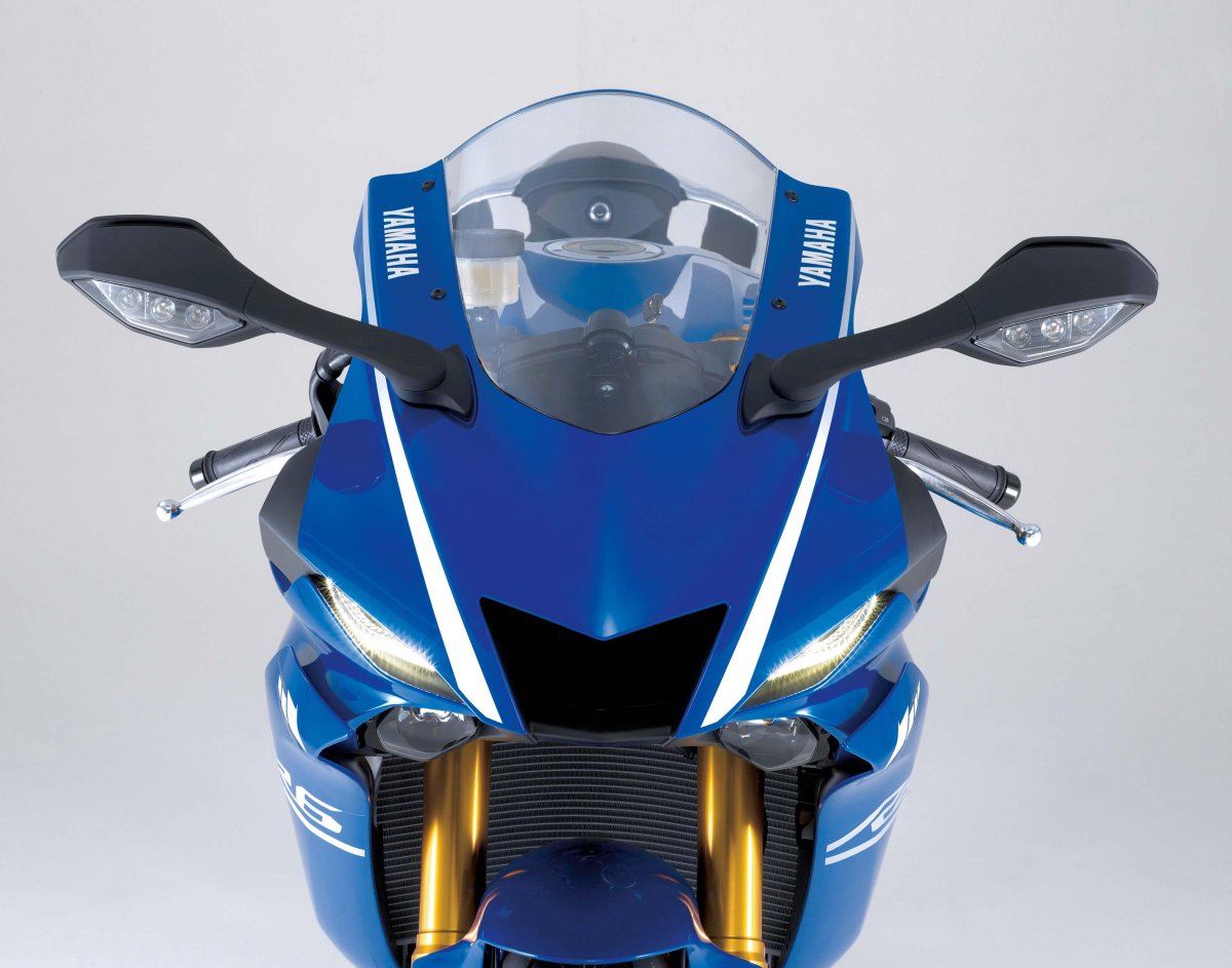 Powyżej: Pełna agresja bije z oblicza nowej R6. Widoczne „oczy” to światła dzienne, poniżej mamy soczewki LED, które spełniają rolę świateł mijania i drogowych.
