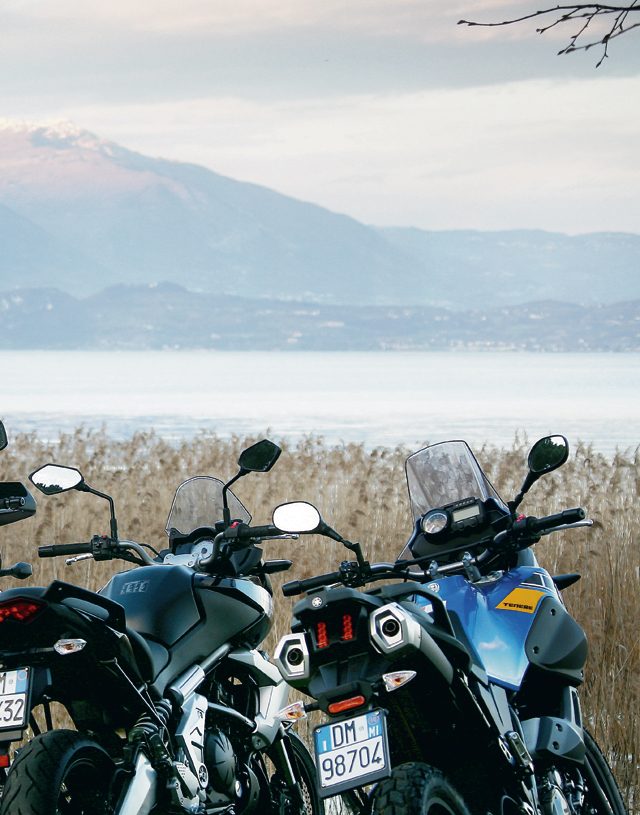 Yamaha Ténéré sprawdzi się szczególnie, jeśli potrzebujesz prawdziwie terenowego enduro, jeśli szukasz motocykla łaknącego uroków pustyni, niekończących się przestrzeni afrykańskich. Kiedyś wyruszyliśmy na nim z Mediolanu, pokonując pół Tunezji, wygodnie, choć obładowani. Trudno odmówić mu zalet podróżnych. Potrzeba jednak wykazać się nieco większym opanowaniem niż w przypadku pozostałych. Jego singiel wibruje. Jest to do wytrzymania, jak długo poruszasz się po autostradzie z prędkością 130 km/h, ale wystarczy przyspieszyć choćby odrobinę, aby zaczęło to przeszkadzać. Na zakrętach albo postanawiasz nie zwracać uwagi na innych, którzy na swoich Versysach, Transalpach i V-Stromach zaczynają uciekać, albo ciśniesz do oporu świadom tego, że pod koniec dnia będziesz czuł mrowienie w rękach. Jednak i tak to żyłowanie nie na wiele się zda – dostępność mocy jest ograniczona, choć na szczęście jest do dyspozycji w szerokim zakresie obrotów. Pościgi są jednak wykluczone.