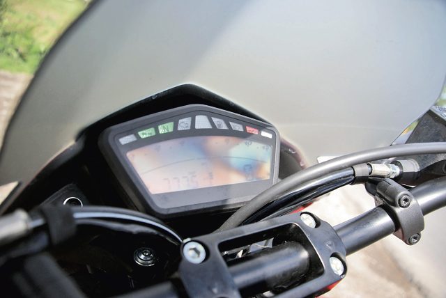 Ducati Hypermotard przy TDM to wręcz rower. Siedzenie jest twarde i wąskie. Siedzi się niemal na silniku, a przy tym bardziej z przodu dociążając przednie koło. Jest 2 cm wyżej – chyba zapomniano o najniższych kierowcach. Kierownica jest za to zdecydowanie niższa i szersza, a dodatkowo nadmiernie poszerzają ją rozkładane lusterka. Dobrze, że są składane, bo dopiero po ich złożeniu można i to nadal z problemami przebijać się przez zakorkowane samochodami ulice. W przeciwieństwie do hałasującego niczym sieczkarnia suchego sprzęgła w większym bracie, tak ulubionego przez „ducatisti”, w osiemsetce tarcze pracują w kąpieli olejowej. Do nacisku klamki nie trzeba wreszcie używać czterech palców ręki. Kokpit stanowi ciekłokrystaliczny wyświetlacz w wieloma nieużytecznymi na co dzień funkcjami – oprócz lap-timera do dyspozycji mamy nawet pomiar napięcia w instalacji elektrycznej.