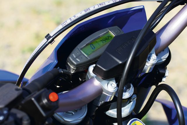 FX450 jest ostatnim z prezentowanych modeli czterosuwowych, przystosowanym do zawodów cross country. Od FE450 różni się zestrojeniem zawieszenia, innymi przełożeniami, brakiem świateł i uboższym wyświetlaczem przy kierownicy. Zmiany niezbyt duże, jednak wystarczyły, bym uznał ten model za mój ulubiony. Mocy ma w sam raz. W dolnym zakresie obrotów ciągnie spokojnie, ale zdecydowanie, w górnym zaś naprawdę rozwija skrzydła. Jest nieco lżejszy od modeli FE (tym razem moje odczucia zgadzają się z danymi), prowadzi się także nieco pewniej – jest trochę sztywniejszy, dzięki czemu lepiej czuć, co się dzieje pod kołami.