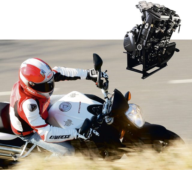 Nawet pełne otwarcie gazu już przy 2000 obr/min na szóstym biegu dokonuje się bez jakiegokolwiek szarpania. Silnik nabiera obrotów przy akompaniamencie przyjemnego odgłosu zasysania. Ciągnie tak bez wahania aż do 8000, jeśli pominąć leciuteńki spadek mocy przy 3500 obr/min. Nie ma wprawdzie momentu obrotowego 1090RR, ale liniowość jest lepsza i przyjemność jazdy jest tylko nieznacznie zakłócona przez skrzynię biegów, szczególnie przy „wysokich” biegach. Dopiero po przekroczeniu 9000 obr/min brzmienie dobywające się z wydechu zaczyna mile świdrować kask, a zryw rozprzestrzenia się władczo dobrze powyżej 11 000 obr/min. To właśnie w tym szczytowym zakresie, gdzie najmniej się tego spodziewasz, czterocylindrowy silnik zaskakuje zaciekłością godną 1090RR.
